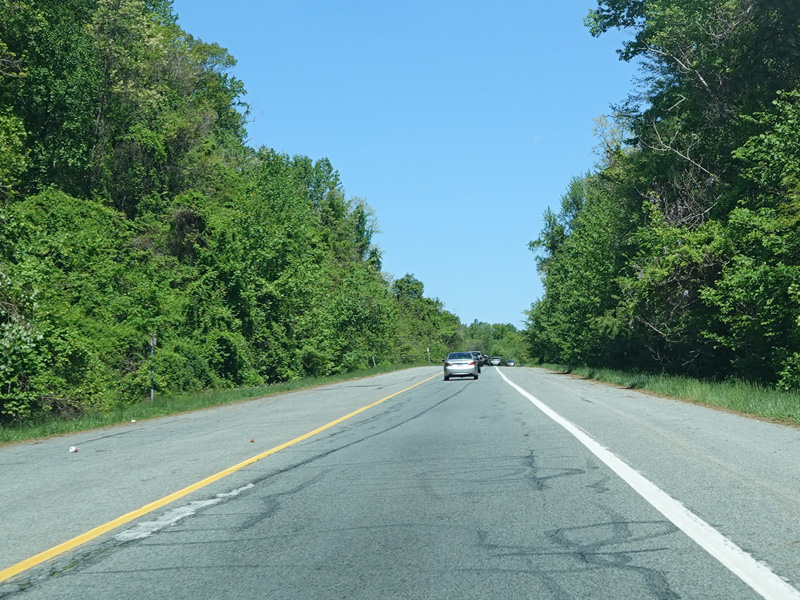 Skipping north to Pylesville, Rocks Road runs north as a two-lane undivided road.