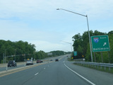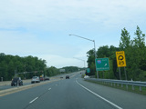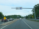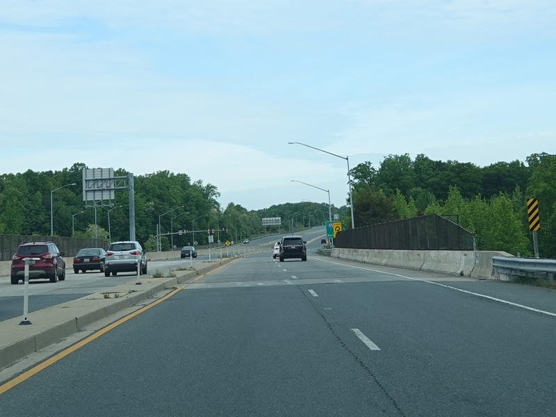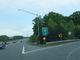 The service road splits off from Vietnam Veterans Memorial Highway just north of the traffic light at the ramps for the northbound side of the John F. Kennedy Memorial Highway (I-95).