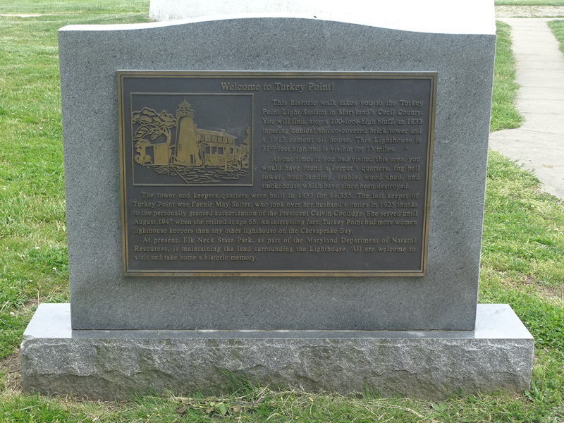 At the southern end of Turkey Point Road, there is a trail leading to the Turkey Point Lighthouse at the tip of the peninsula along Chesapeake Bay. There are historical plaques on the lighthouse and the British invasion of this area during the War of 1812.