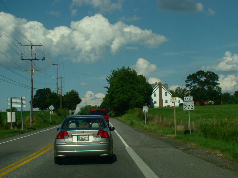 Telegraph Road continues east to the border with Delaware. There are uncontrolled intersections at Little Egypt Road and Glen Road. At the state line, it becomes Nottingham Road (DE 273).