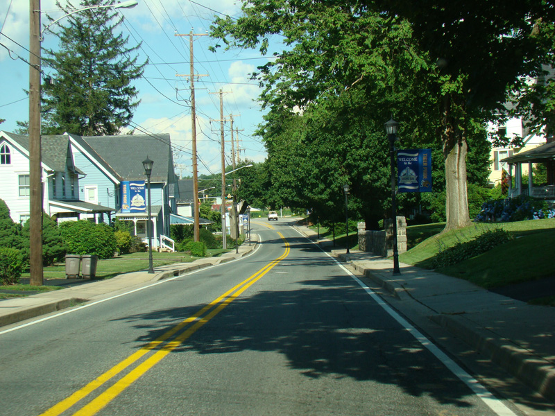 Heading into the downtown area of Rising Sun, Rising Sun Road becomes Main Street.