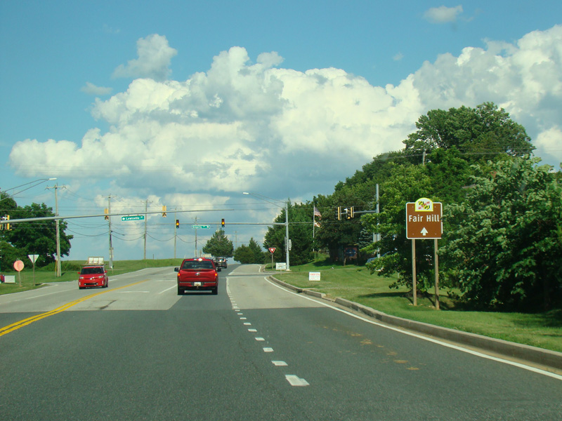 There is a traffic light at Chrome Road (MD 272). Turn left to go north or right to go south.