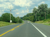 Heading out of town, Main Street becomes Telegraph Road. There are uncontrolled intersections at Stevens Road, Pierce Road, Sylmar Road, and Wilson Road.