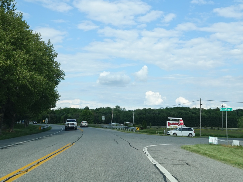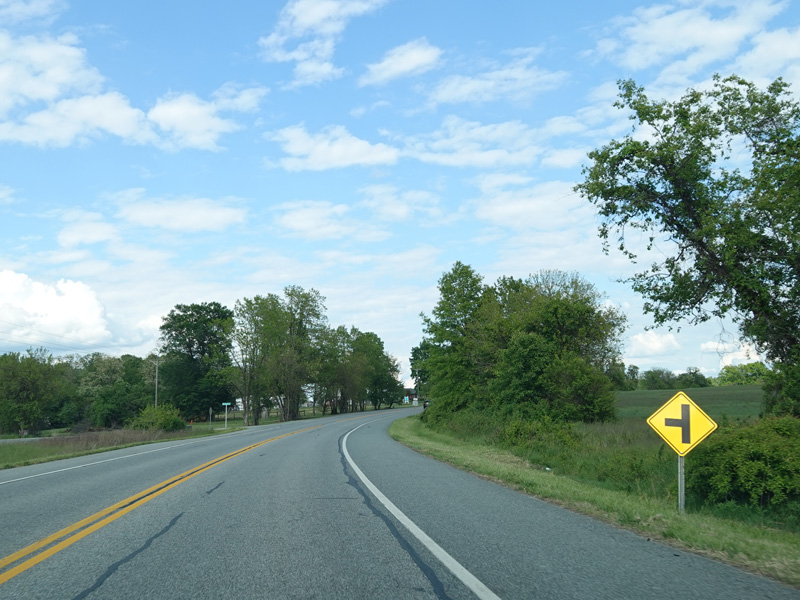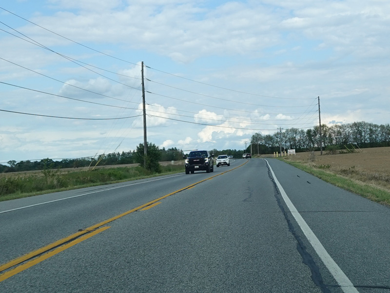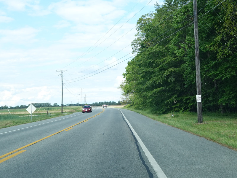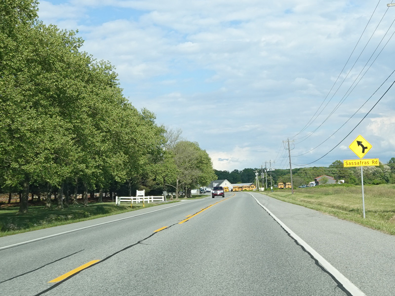 Heading out of town, the speed limit goes up to 50 MPH. MD 282 changes names to become Cecilton Warwick Road. There are uncontrolled intersections at Worsell Manor Road and Sassafras Road.