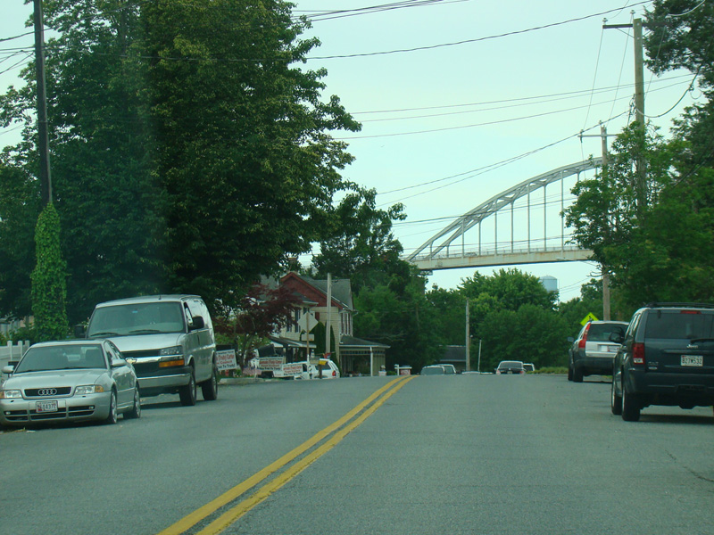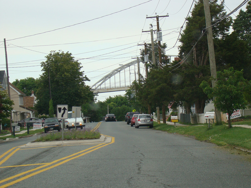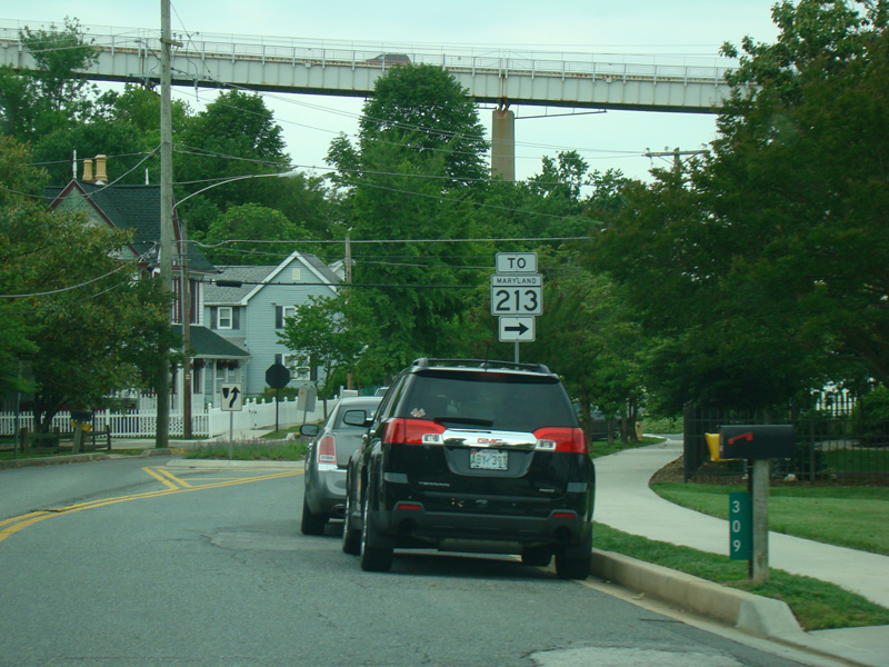 The Chesapeake City Bridge, which carries MD 213 over the Chesapeake and Delaware Canal, is visible straight ahead.