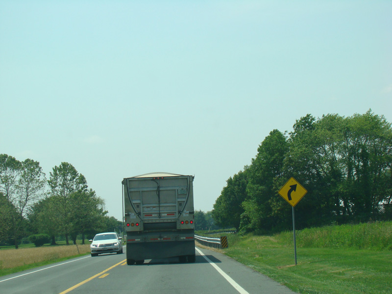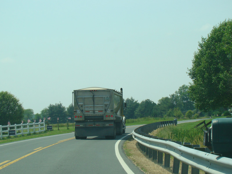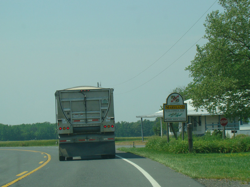 Welcome to Maryland! Whiteleysburg Road runs west through farm country as a two-lane undivided road.
