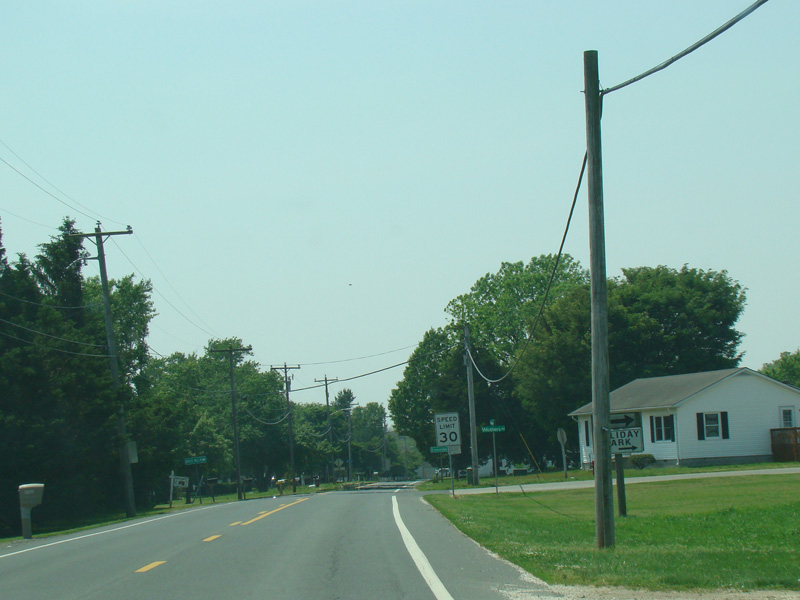 There is a traffic light at Main Street (MD 480). Turn right to go east or left to go west. There is no route signage at this intersection.