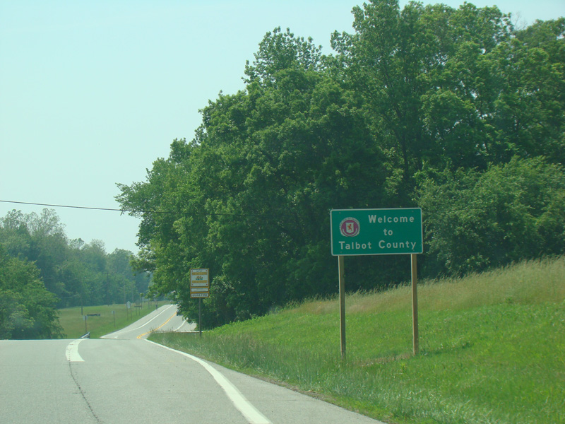 There is a bridge over Tuckahoe Creek to Queen Anne's County. Shore Highway changes names to become Queen Anne's Highway.