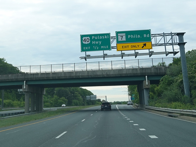 White Marsh Boulevard is an east/west route through the northern suburbs of Baltimore. It is a divided highway with a mixture of grade-separated interchanges and traffic lights. It provides access commercial development in the area, including the White Marsh Mall and Baltimore Crossroads. It begins at exit 31C of the Baltimore Beltway (I-695) and extends east before curving to the south to end at Eastern Boulevard (MD 150). Along the way, there are grade-separated interchanges at Belair Road (US 1), the John F. Kennedy Memorial Highway (I-95), Philadelphia Road (MD 7), and Pulaski Highway (US 40).