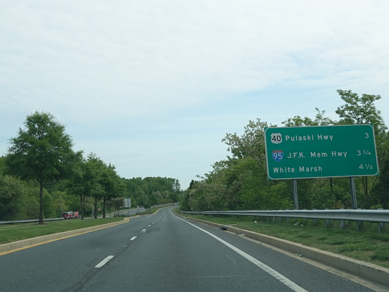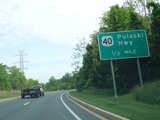 There is a grade-separated interchange with Pulaski Highway (US 40). Turn left at the traffic light before the overpass for access in both directions.