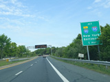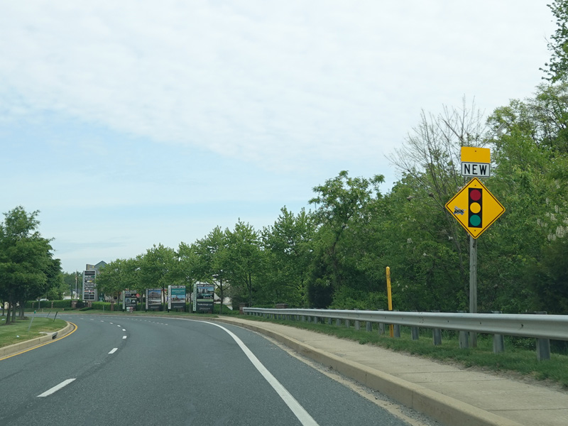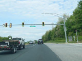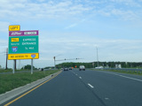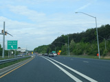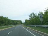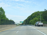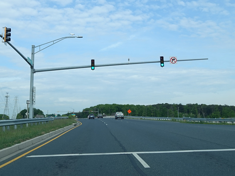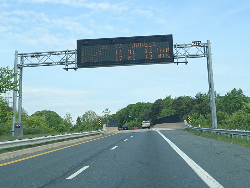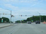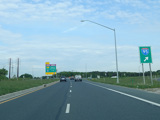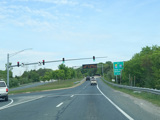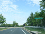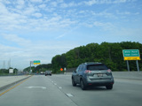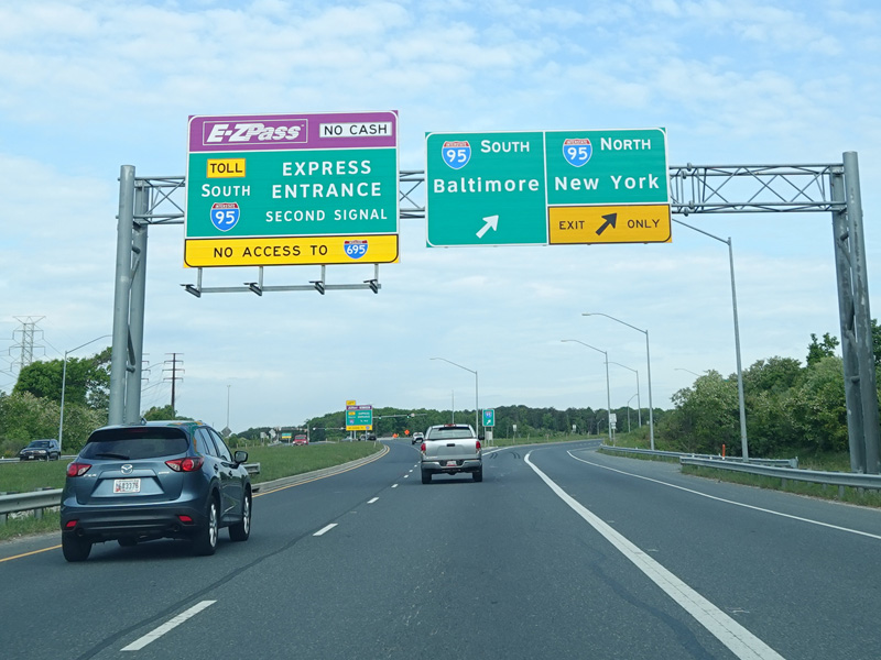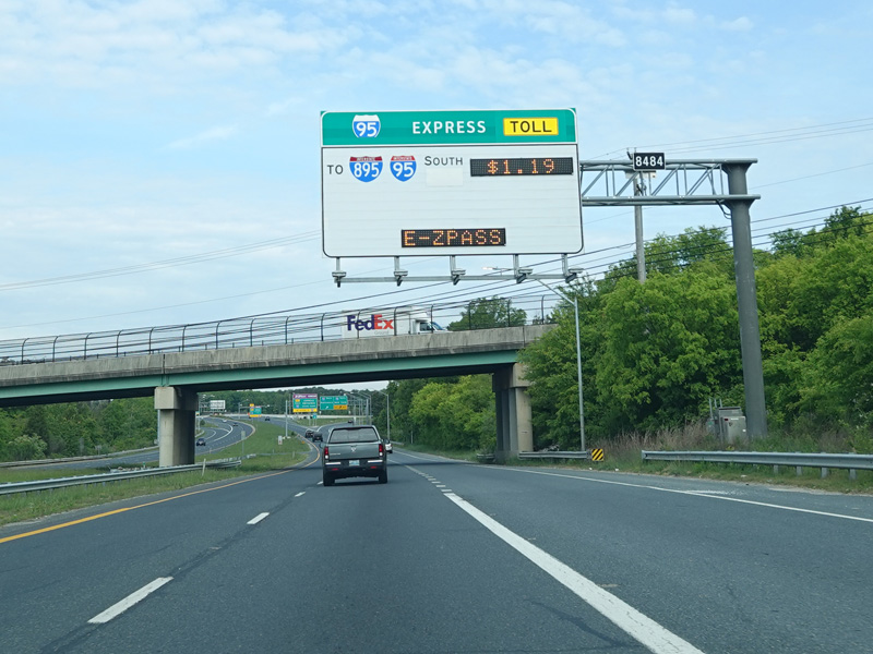 Turn left at the second traffic light to go south in the express toll lanes of the John F. Kennedy Memorial Highway (I-95). There is no northbound entrance because the express toll lanes end just north of here.