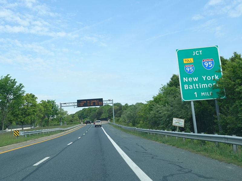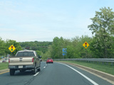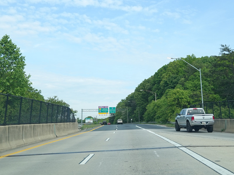 There is an interchange with the John F. Kennedy Memorial Highway (I-95). Continue straight ahead for access to the express toll lanes.