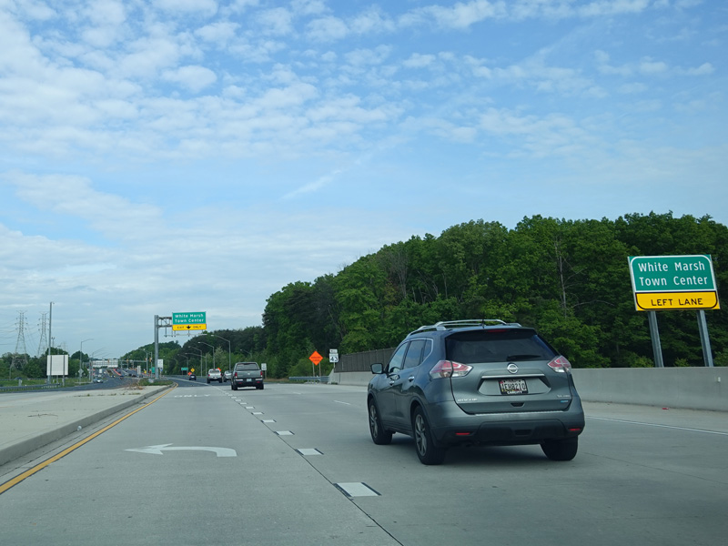 White Marsh Boulevard begins at Eastern Boulevard (MD 150) and runs north as a four-lane divided highway.