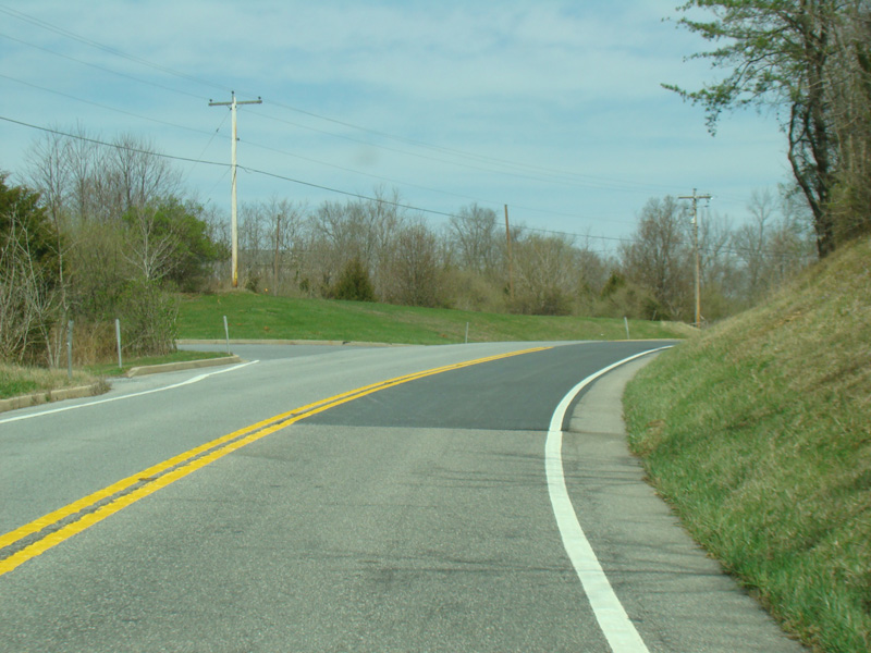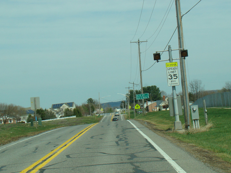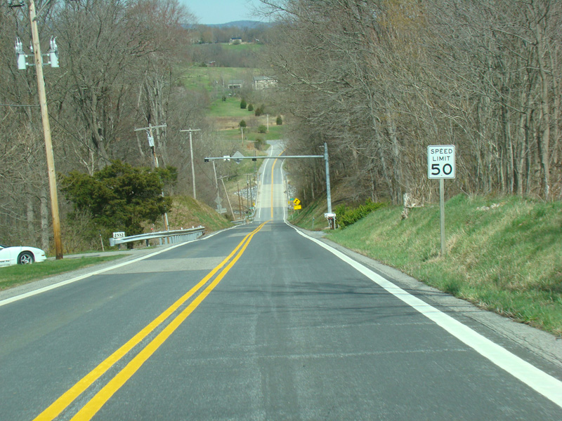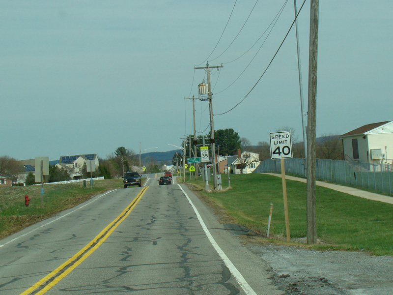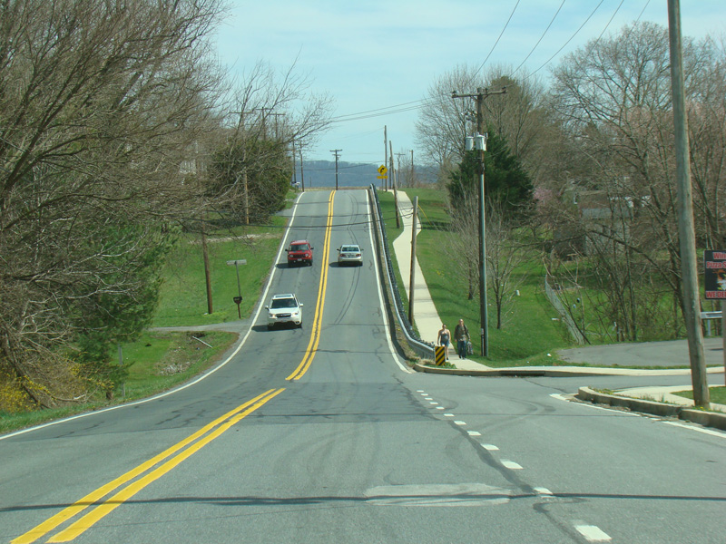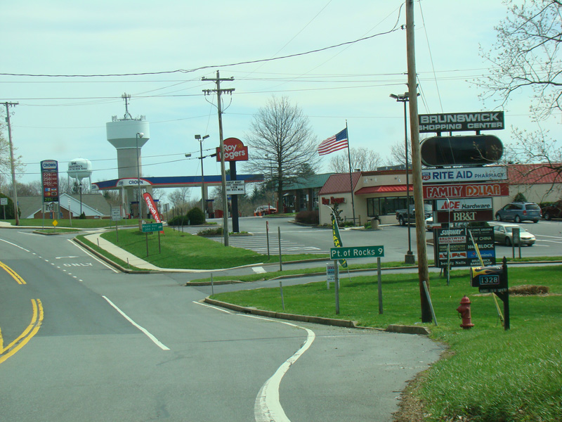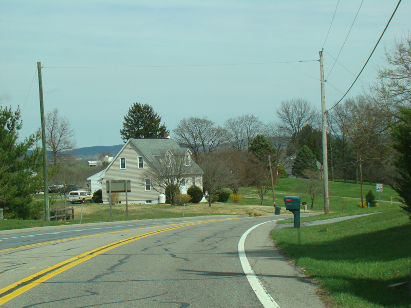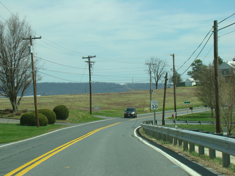 Point of Rocks Road runs east to Point of Rocks as a two-lane undivided road. There are uncontrolled intersections at Olive School Road, Boss Arnold Road, Ausherman Road, Horine Road, Lander Road, and Fry Road.