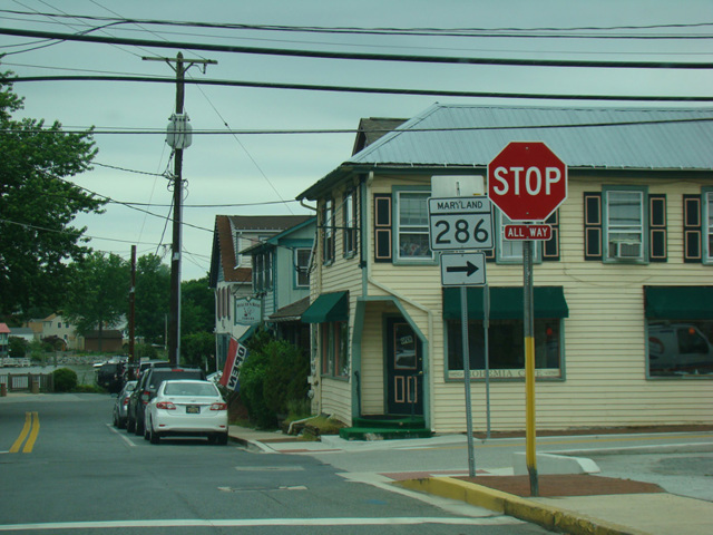 George Street is a short north/south route in Chesapeake City. It begins at the exit from Augustine Herman Highway (MD 213) just south of the Chesapeake City Bridge and runs north to a dead end at the Chesapeake and Delaware Canal. It serves to carry traffic from the exit to 2nd Street (MD 286) and St. Augustine Road (MD 342), which have their western and northern termini, respectively, at George Street. The numerical designation of MD 537 for George Street is unsigned. The exit is marked for MD 286 and MD 342 only.