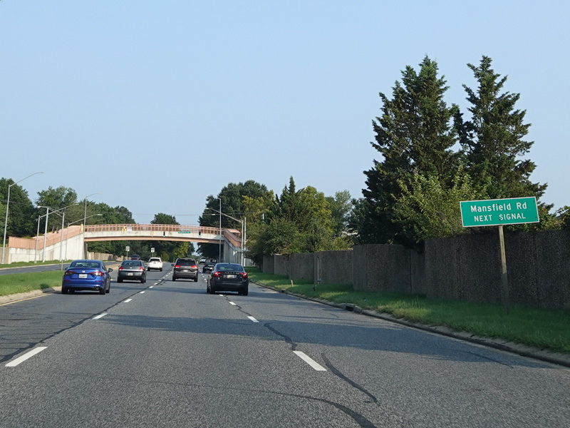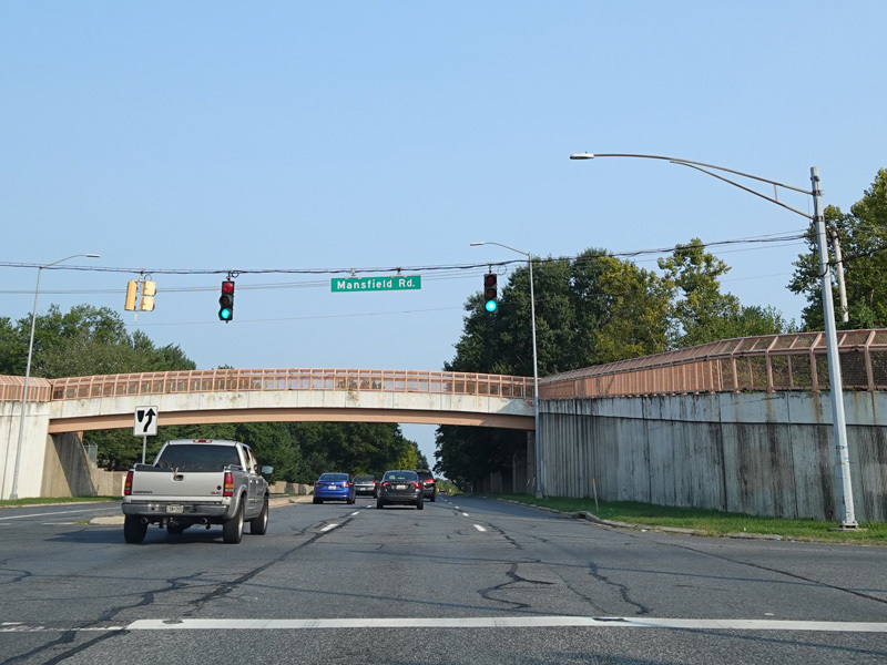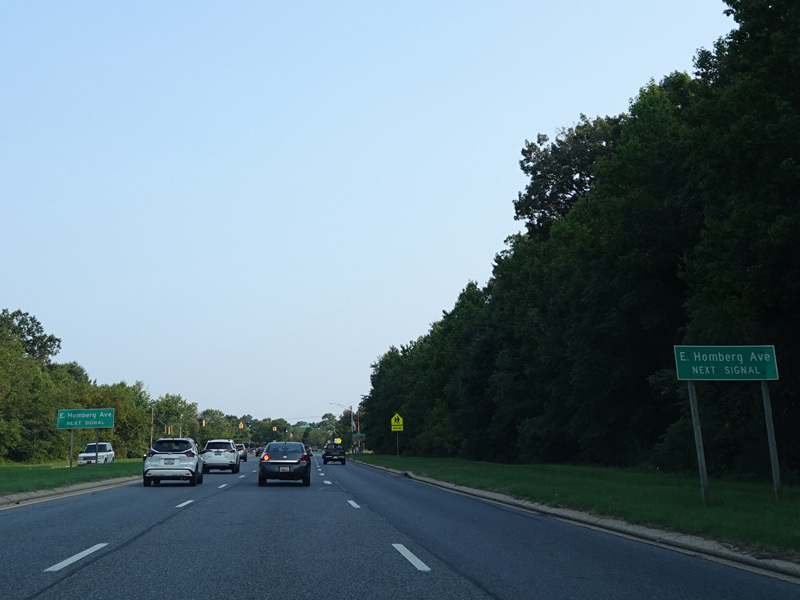 There are traffic lights at East Homberg Avenue, Mansfield Road, and Middleborough Road.