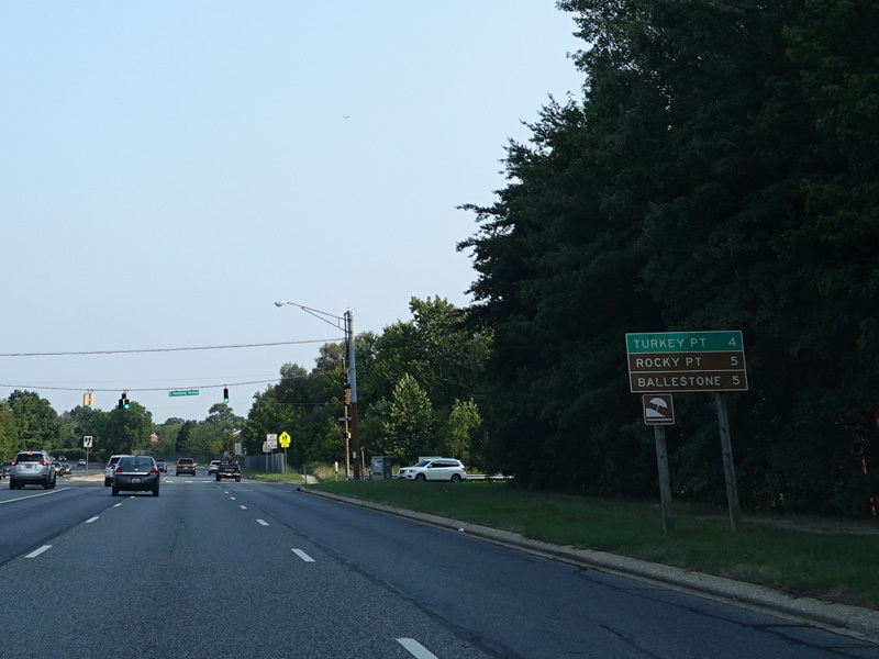 Southeast Boulevard ends here at an uncontrolled intersection at Back River Neck Road.