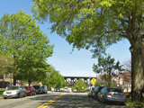 Union Avenue passes under the Amtrak bridge over the Susquehanna River and curves to the west, changing names to become Otsego Street.
