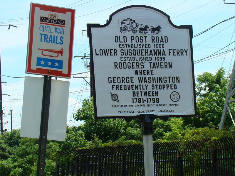 These historical signs are found along Broad Street at Rogers Tavern and inform travellers that George Washington used to travel this road and frequent the tavern.