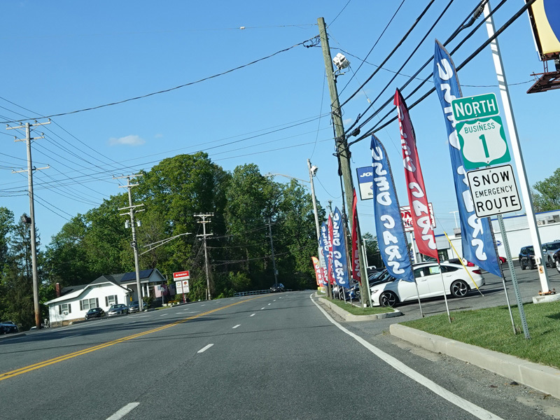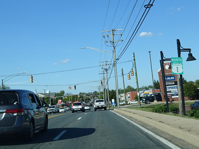Belair Road splits off from the mainline of US 1 to become a business route at the beginning of the Bel Air Bypass. After a short distance, it narrows down to two lanes.