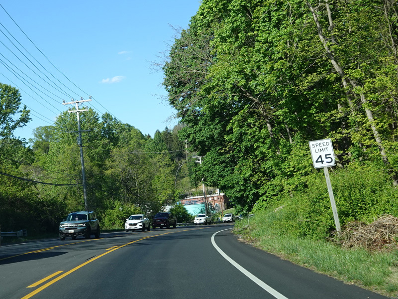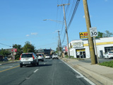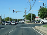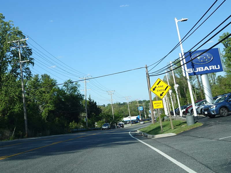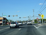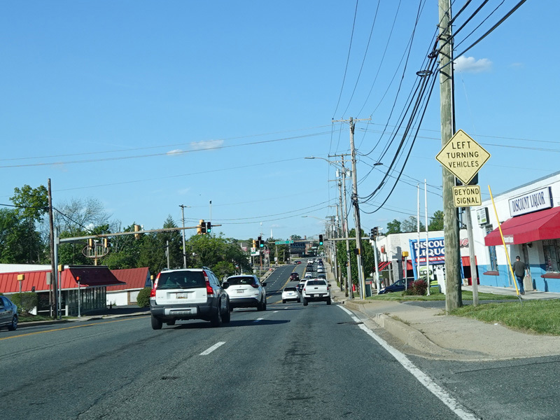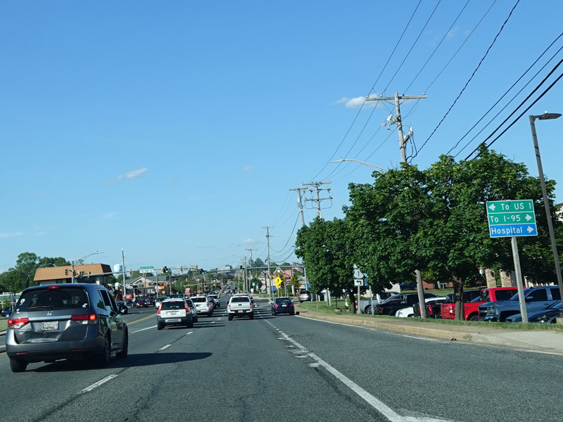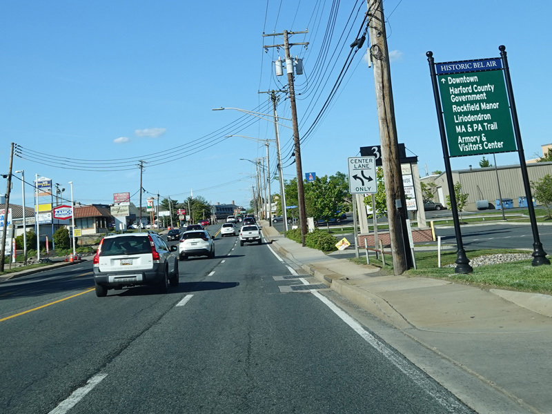 Coming into town, Belair Road widens to four lanes again and changes names to become Baltimore Pike. There is a traffic light at Tollgate Road.