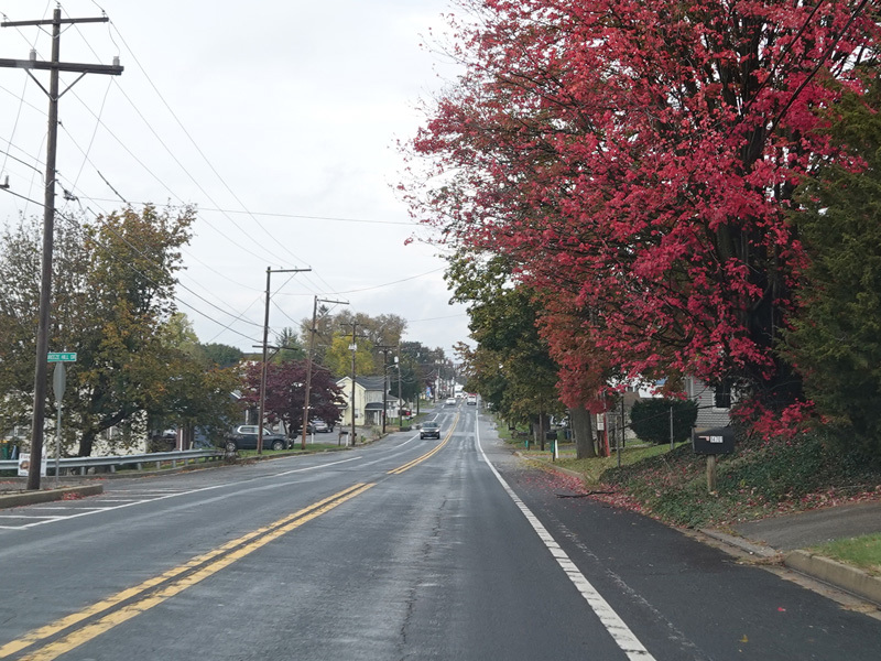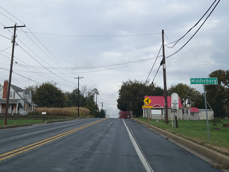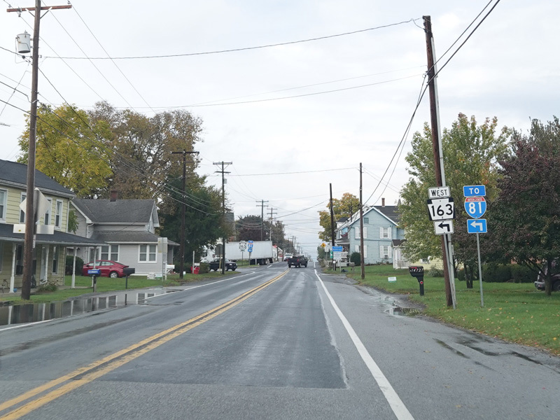 Before US 11 enters Pennsylvania, there is advance signage for Mason-Dixon Road (PA 163), which begins on the left just after the state line.