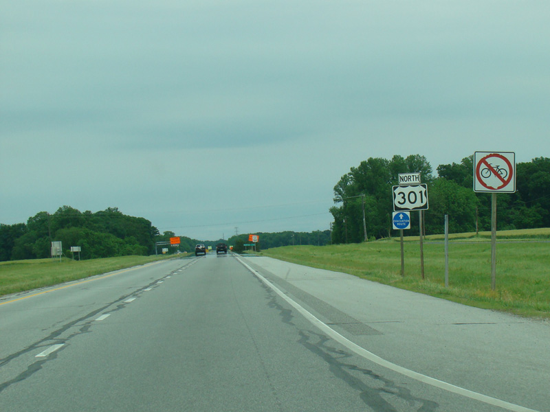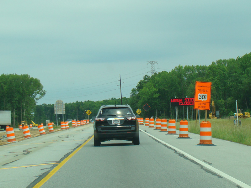 These pictures show US 301 near the state line at appeared while construction was in progress on the toll highway in Delaware. At the time, US 301 narrowed down to two lanes at this point and became Middletown Warwick Road on the other side of the border.