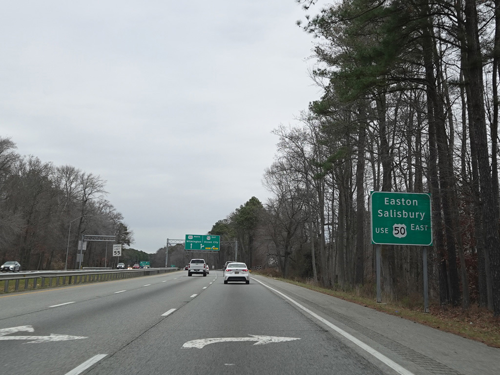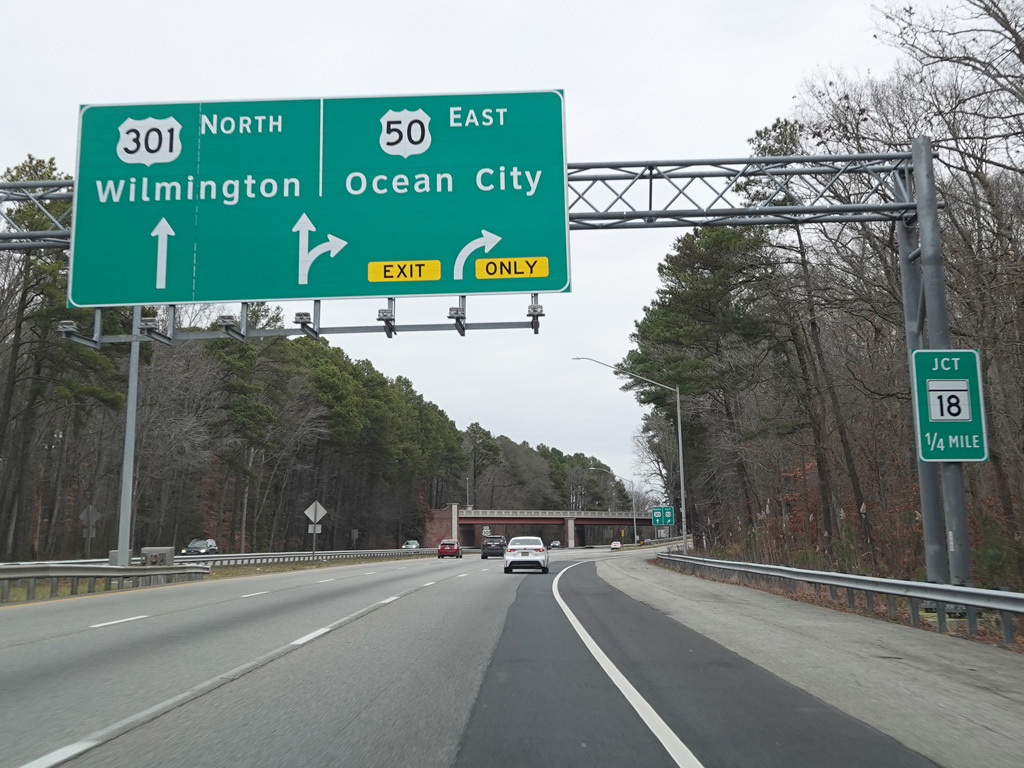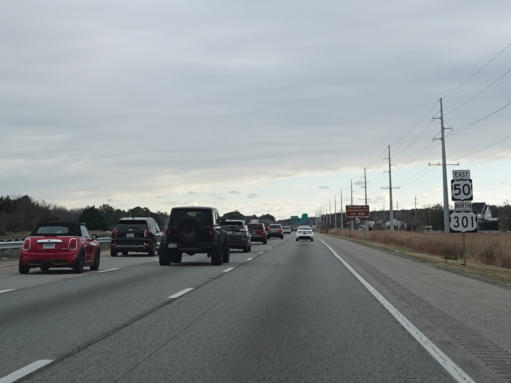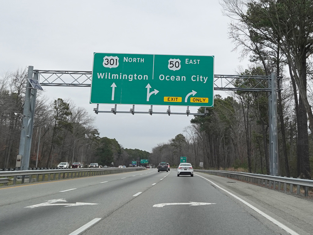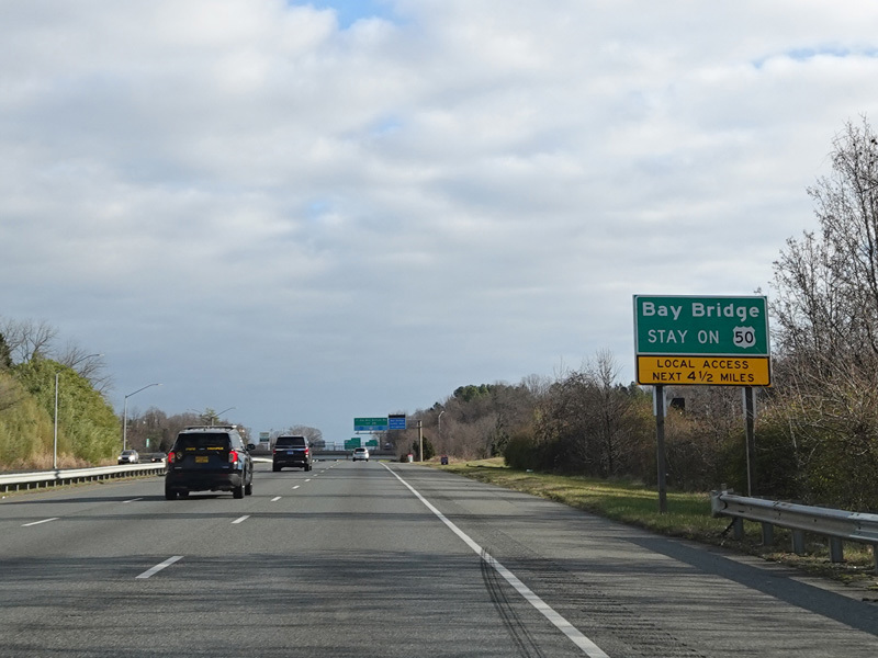 After the split, US 50 is a four-lane divided highway called Ocean Gateway.