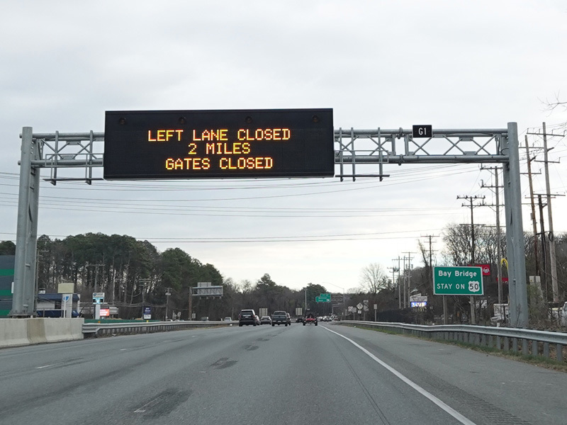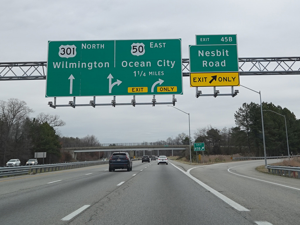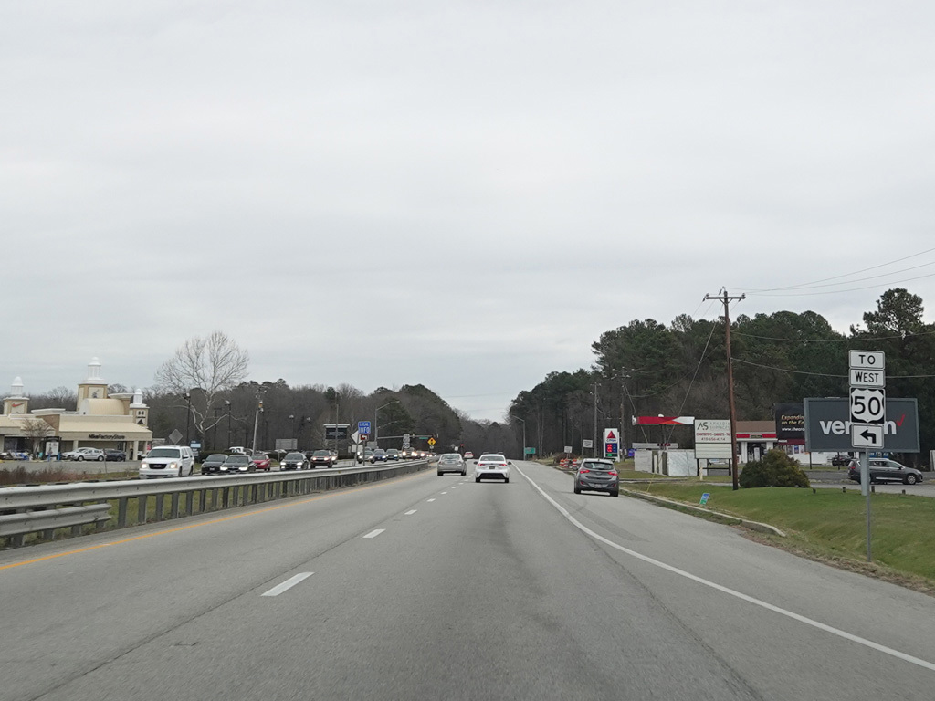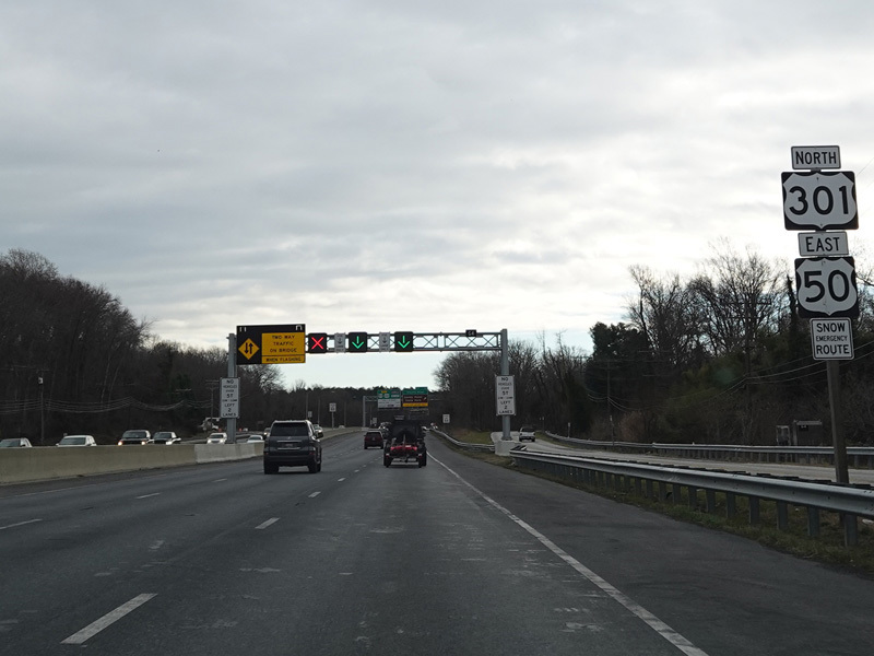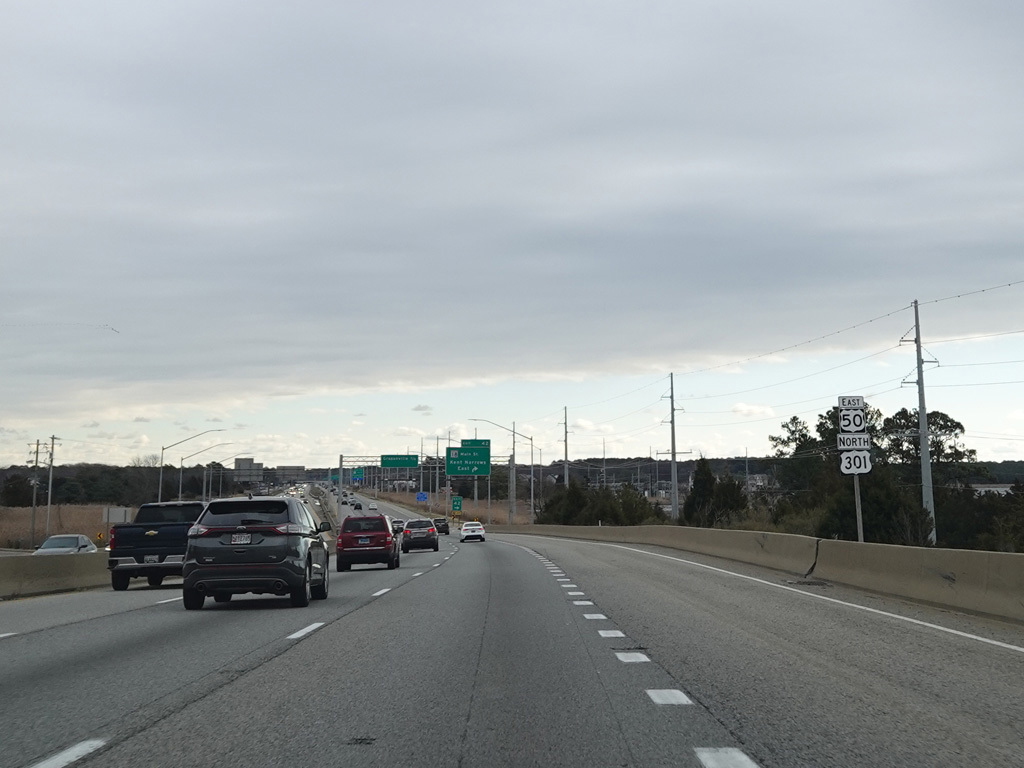 After the split, US 50 is a four-lane divided highway called Ocean Gateway.