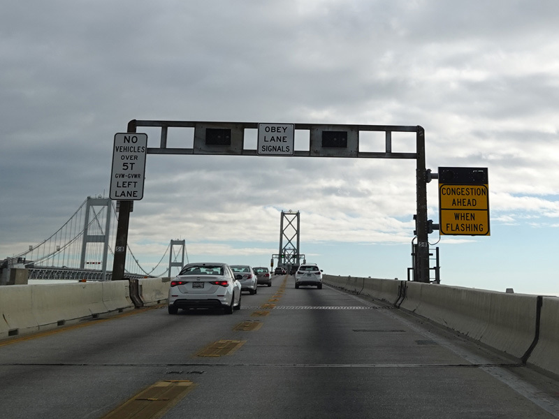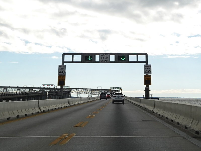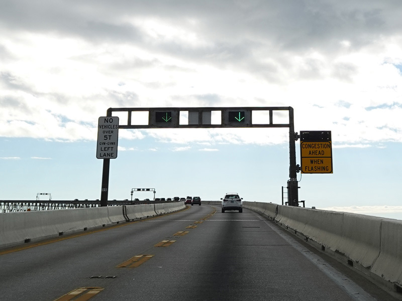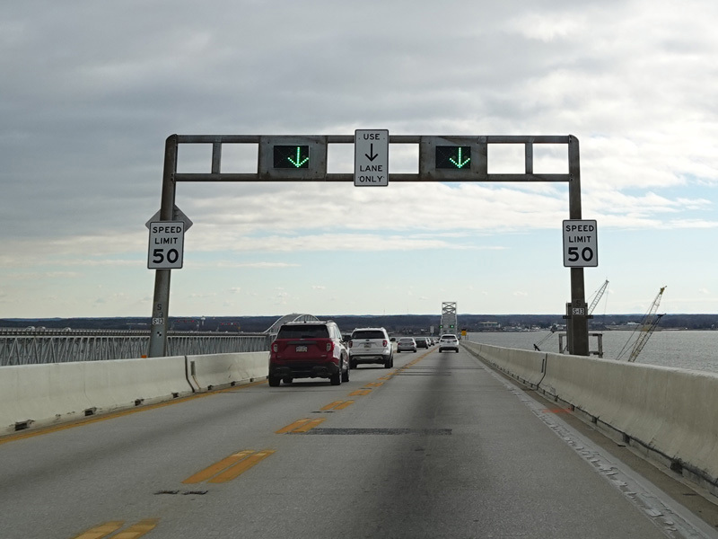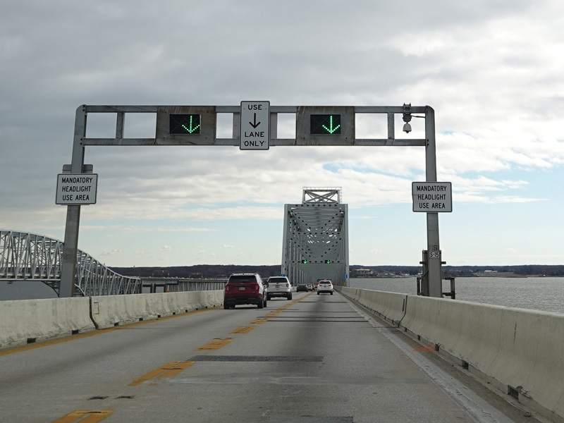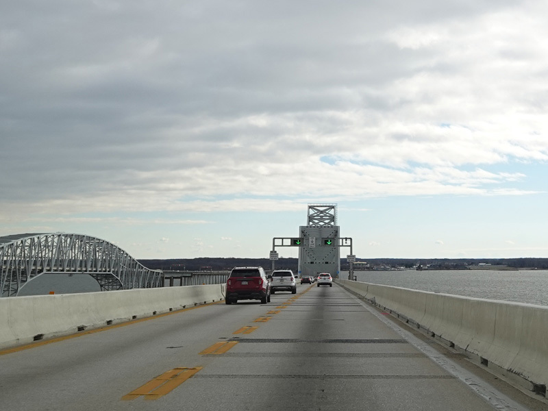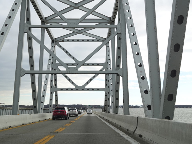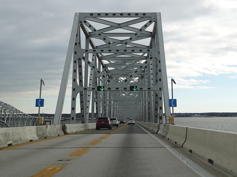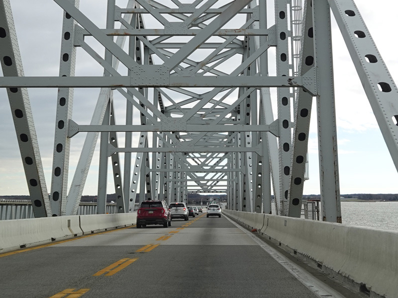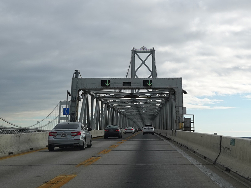 The Bay Bridge carries US 50/US 301 across Chesapeake Bay. It is in part a suspension bridge and in part a truss bridge.