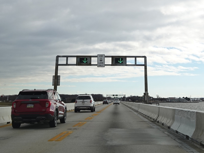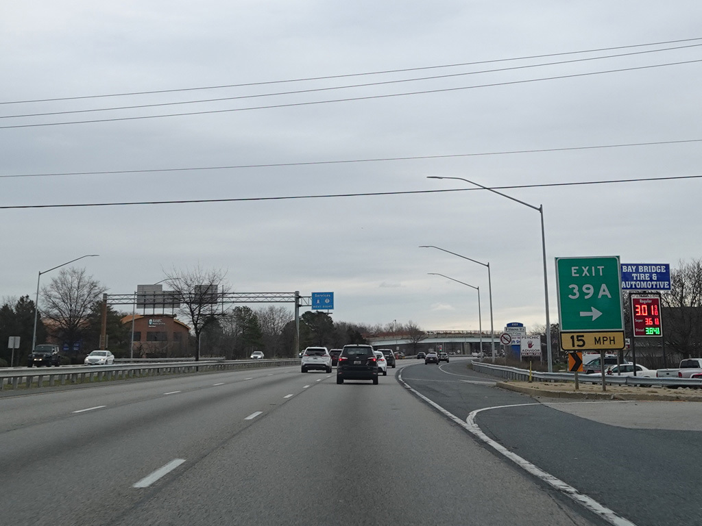 Welcome to the Eastern Shore! There is a cashless tolling gantry on the other side of the bridge. Exit 37 is for Business Parkway (MD 8).