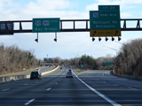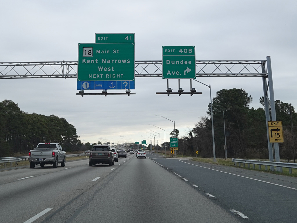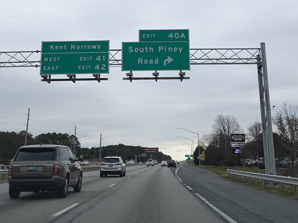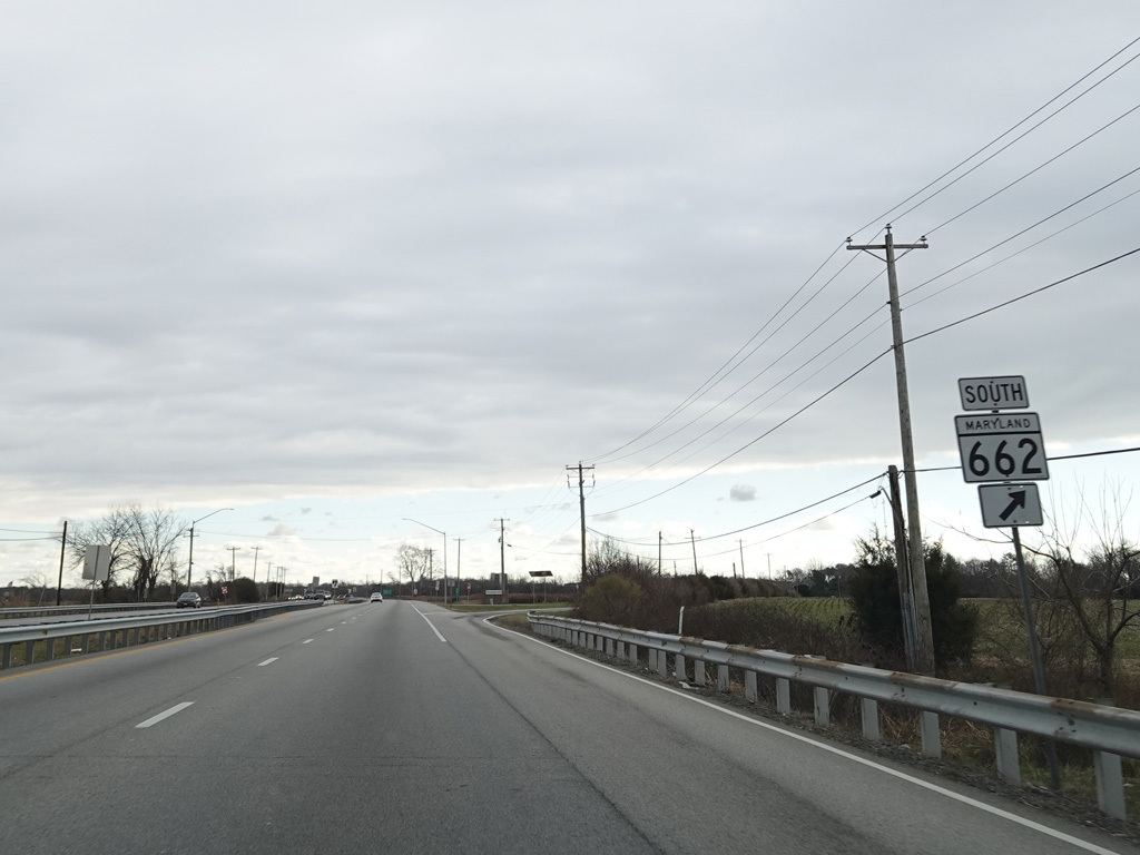 There is an exit on the right for Main Street (MD 18) west. The eastbound direction is only reachable from the westbound side of Ocean Gateway.