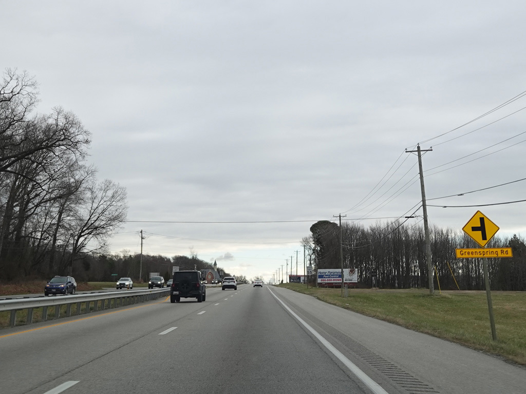 Greenspring Road and Bloomingdale Road begins on the left at uncontrolled intersections.