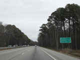 There is advance signage directing motorists to use US 13 south for the Chesapeake Bay Bridge-Tunnel or MD 404 east for the Cape May-Lewes Ferry. Arrington Road begins on the right at an uncontrolled intersection.