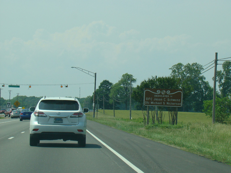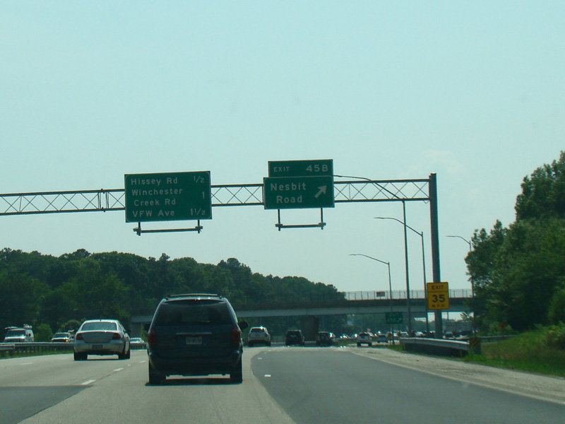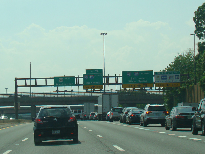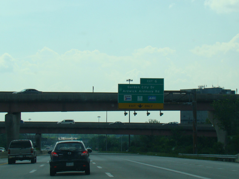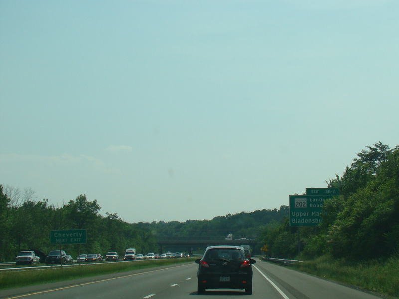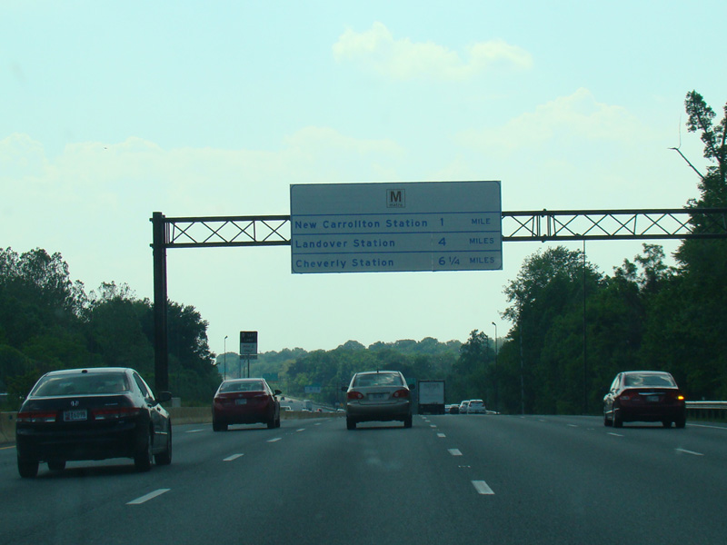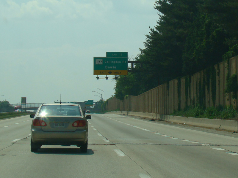There is a pair of exits for Kenilworth Avenue (MD 201), which becomes the Anacostia Freeway (DC 295) just south of here upon entering the District of Columbia.