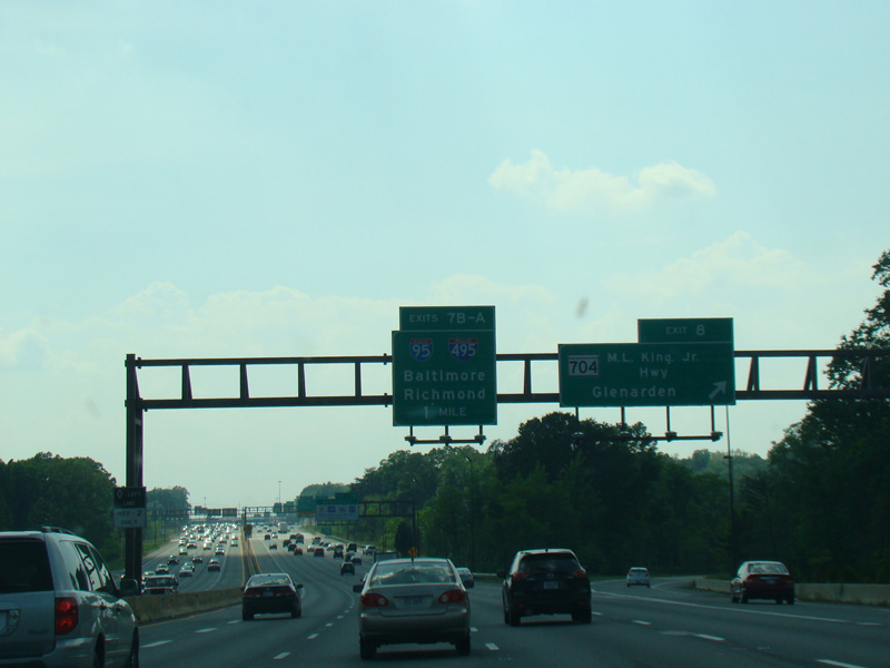 Exit 8 is for Martin Luther King Jr. Highway (MD 704). Exits 7B-A are for the Capital Beltway (I-95/I-495). The I-595 designation ends here.