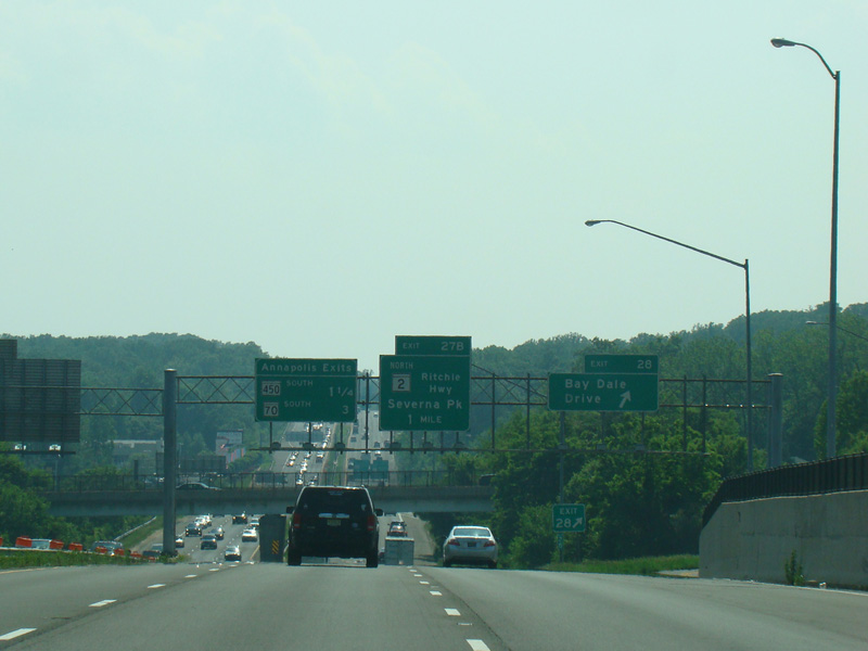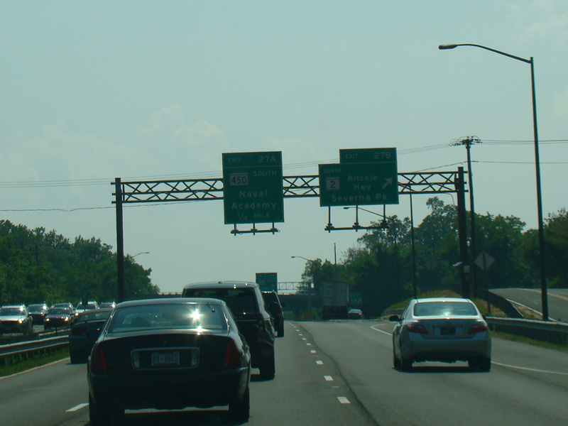 Exit 27B is for Ritchie Highway (MD 2) north. Exit 27A is for MD 450 south.