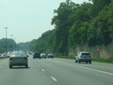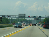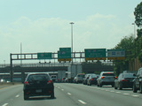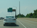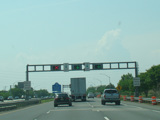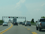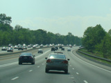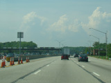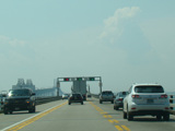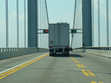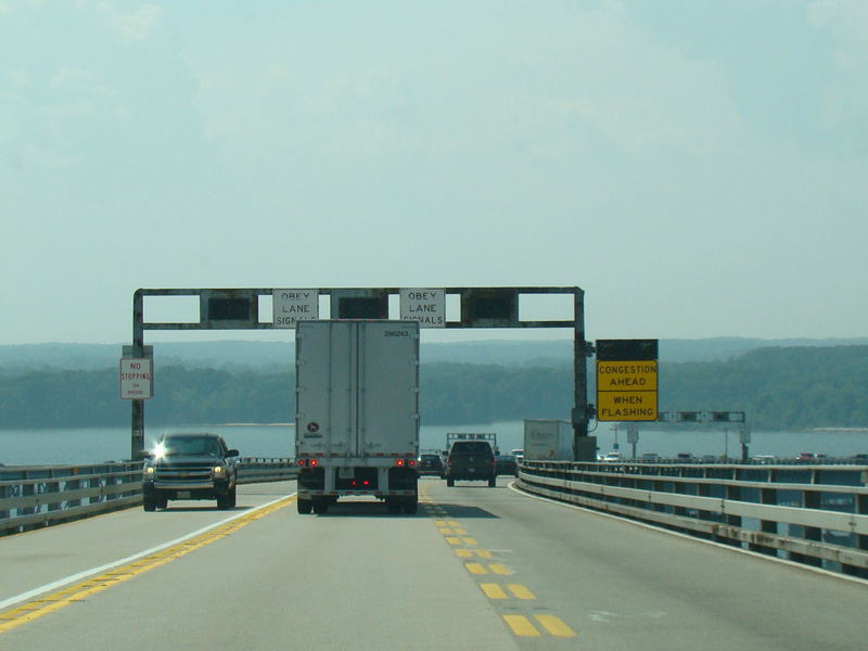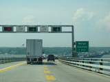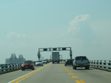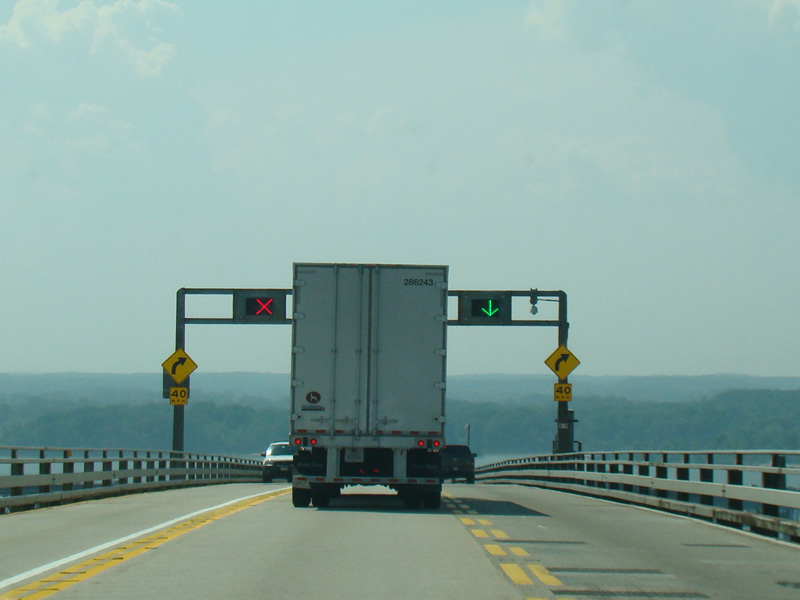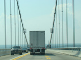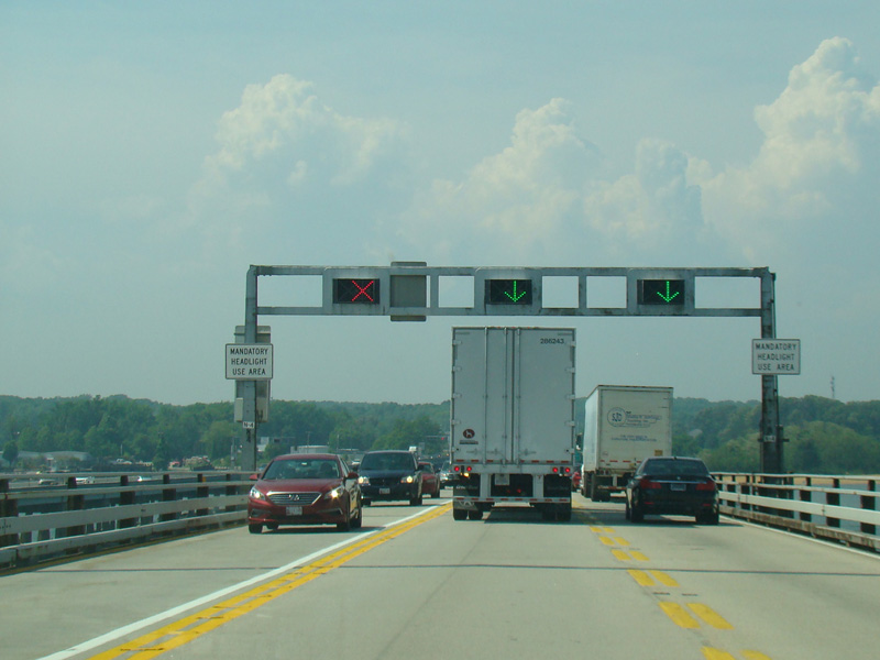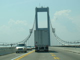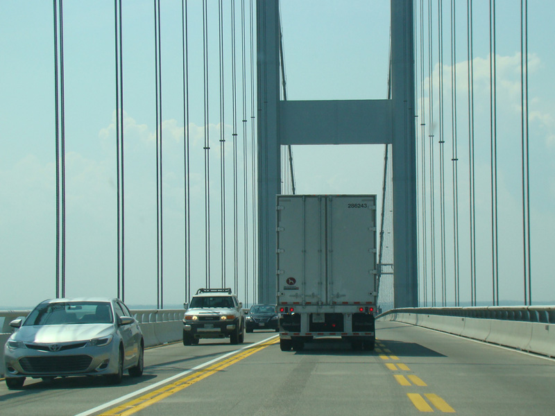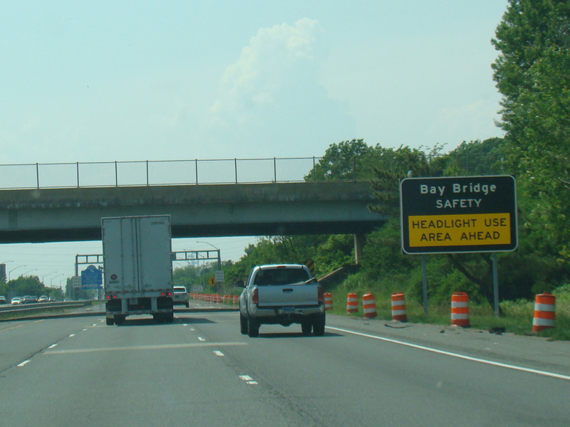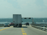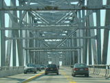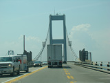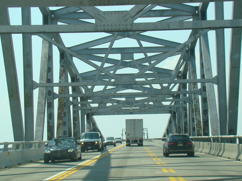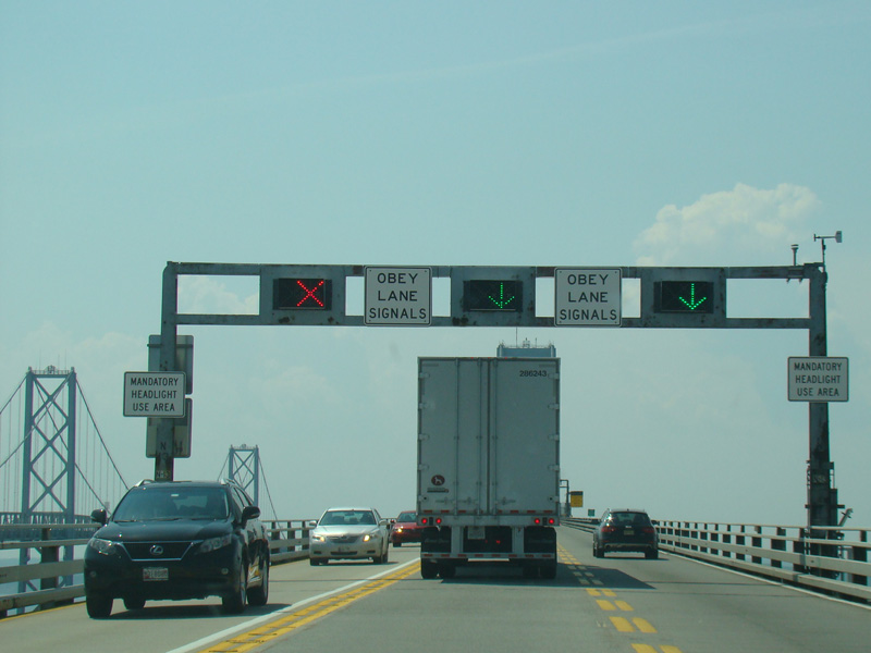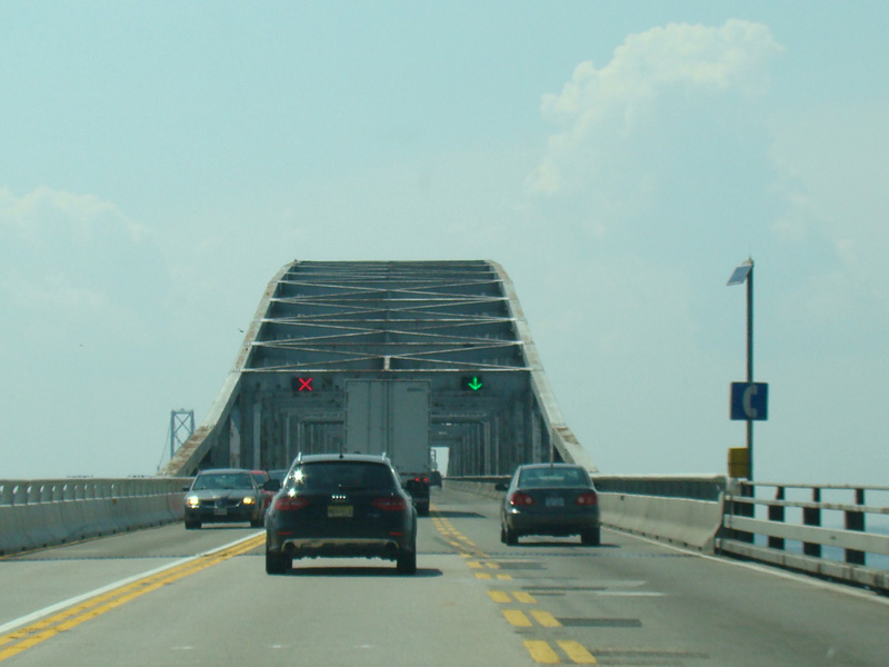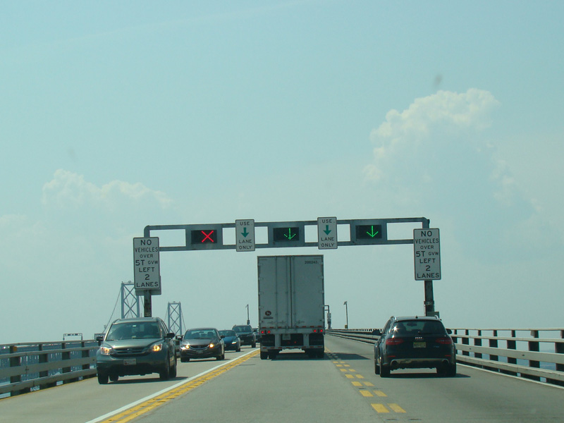 The Bay Bridge carries US 50/US 301 across Chesapeake Bay. It is in part a truss bridge and in part a suspension bridge. The westbound span has a reversible lane that can carry eastbound traffic during the evening rush hour, as was the case when these pictures were taken.