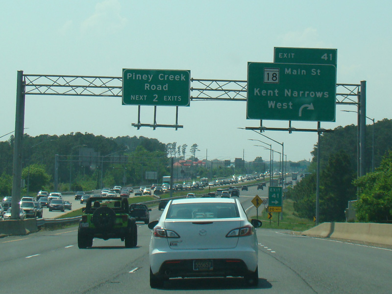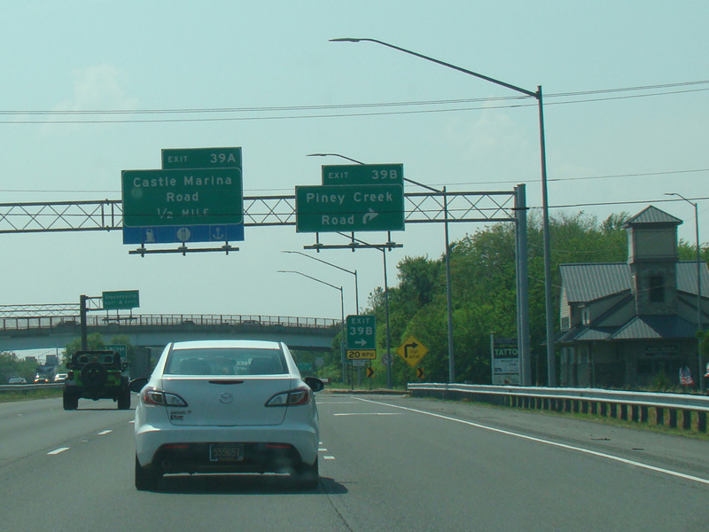 Exit 39B is for Piney Creek Road. Exit 39A is for Castle Marina Road and Main Street (MD 18).