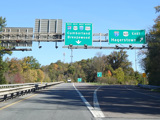 The roadway splits at I-70/US 40. Bear right to go east. Bear left to go west and to stay on US 522.