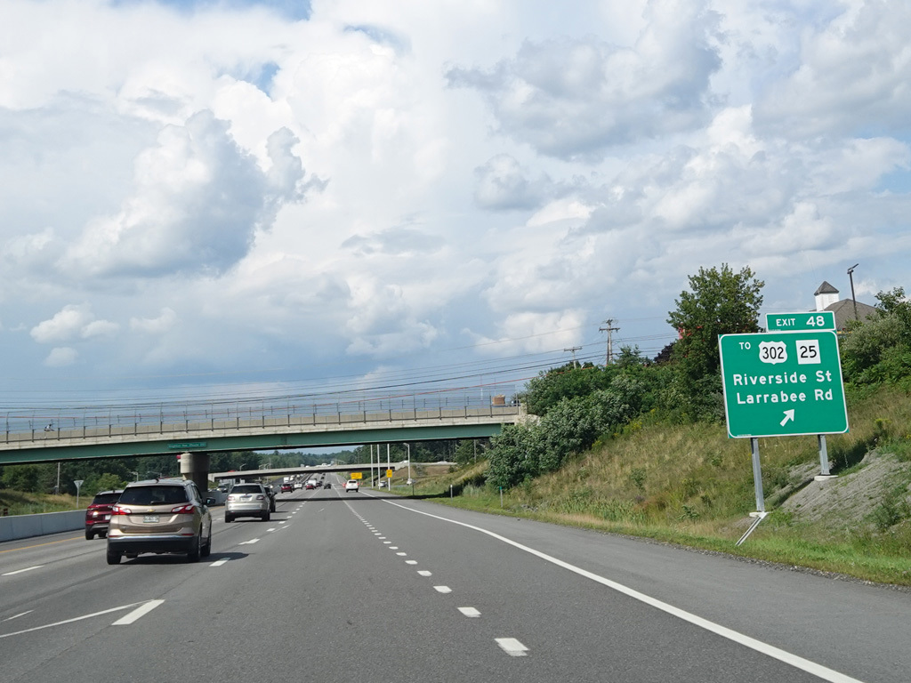 Exit 48 is for Brighton Avenue (Business ME 25), Forest Avenue (US 302), Riverside Street, and Larrabee Road.