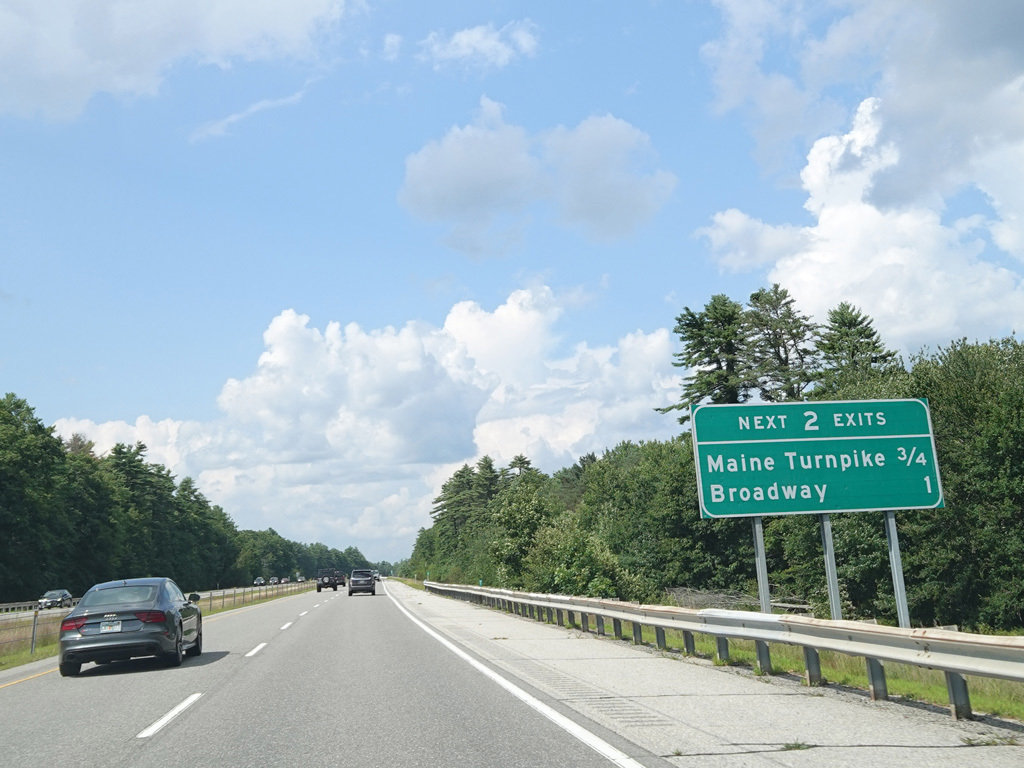 There is an exit for the Maine Turnpike (I-95) and Maine Mall Road. The exit leads to the Maine Turnpike Approach Road (ME 703), which ends at the turnpike.