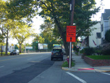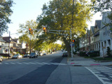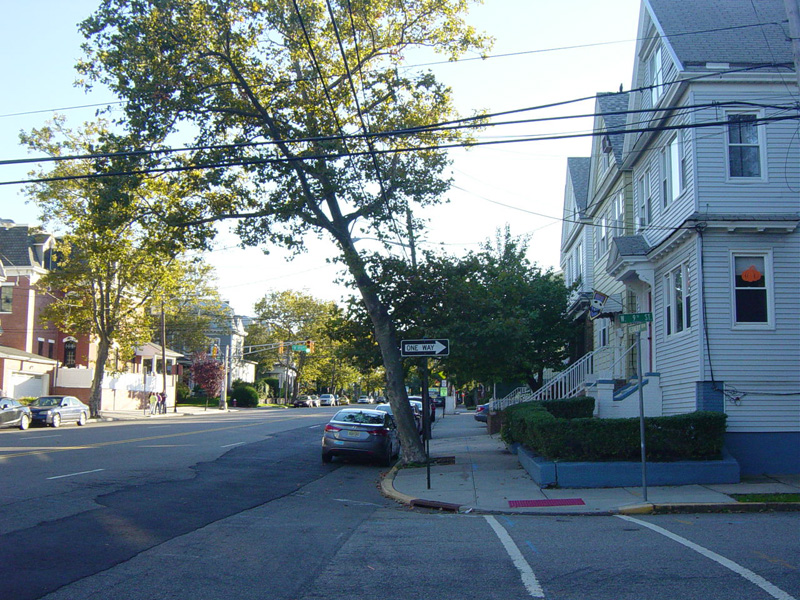 Kennedy Boulevard runs south through Bayonne as a four-lane undivided road. There are traffic lights at West 8th Street and North Street.
