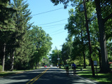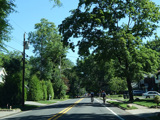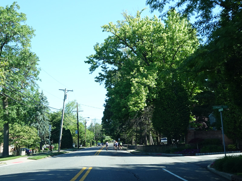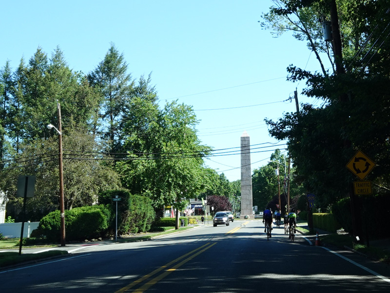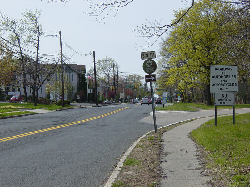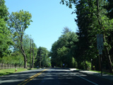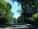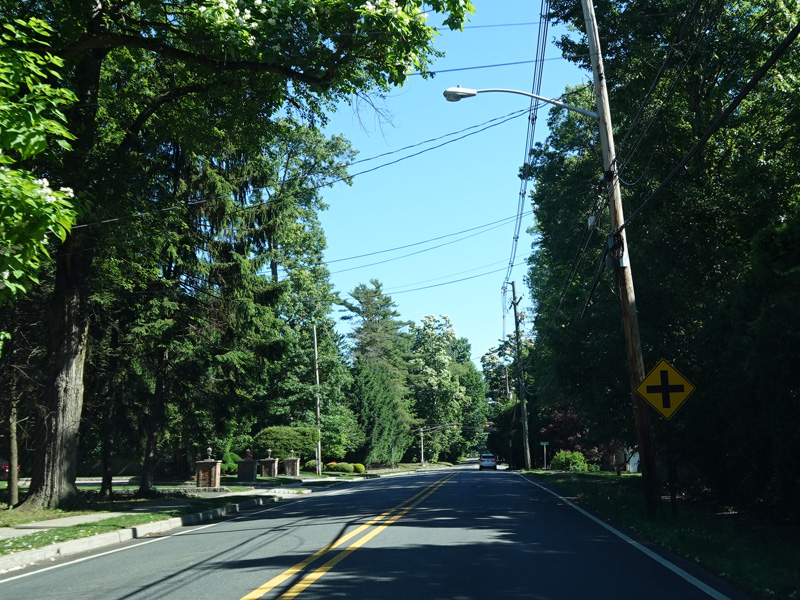 West of the circle, Palisade Avenue is a two-lane divided road.