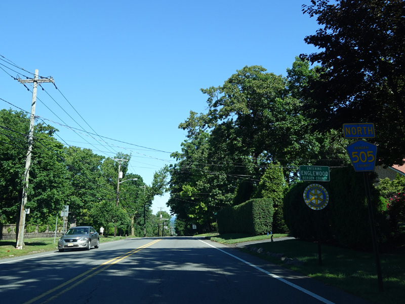Hudson Terrace ends at Palisade Avenue. Turn left to continue north on CR 505 and for access to the Palisades Parkway (NJ 445) south. Turn right for access to the parkway north.