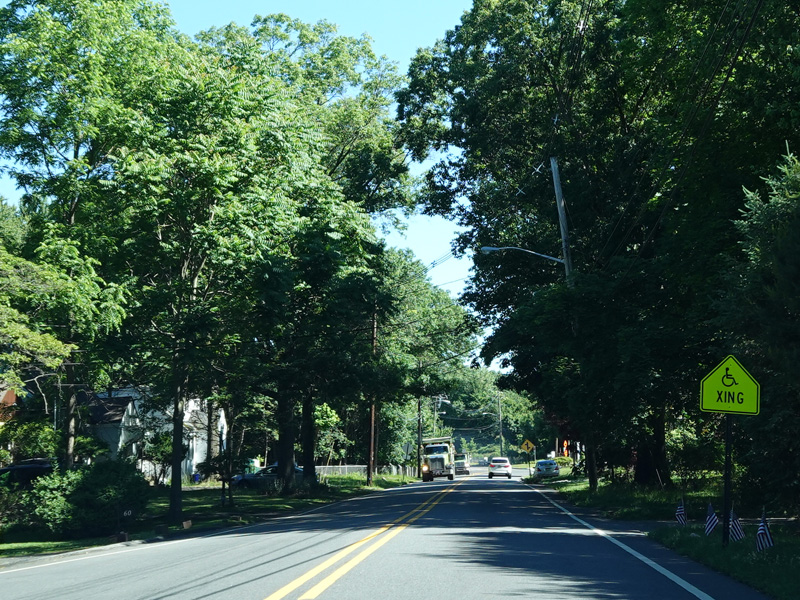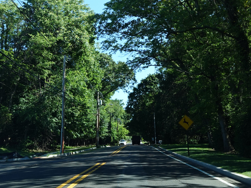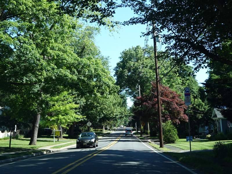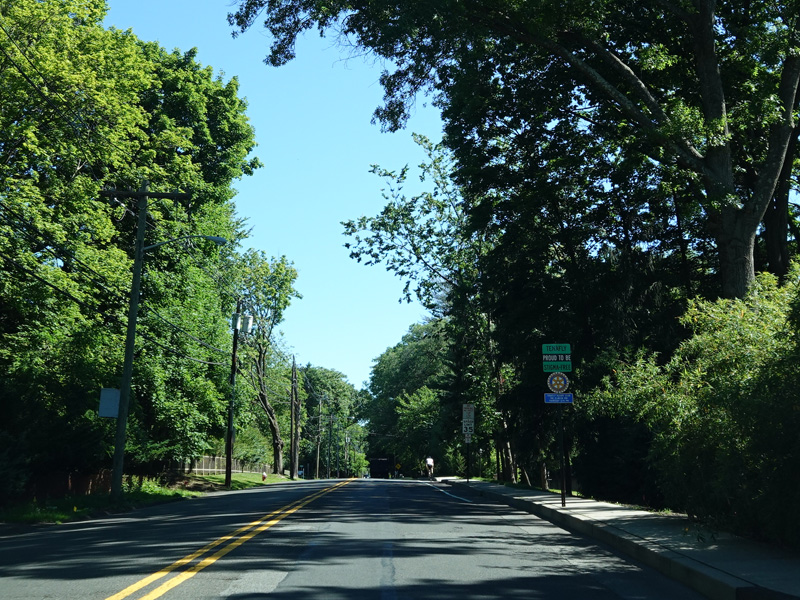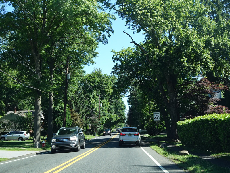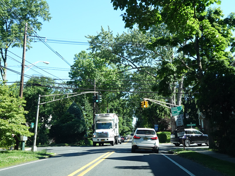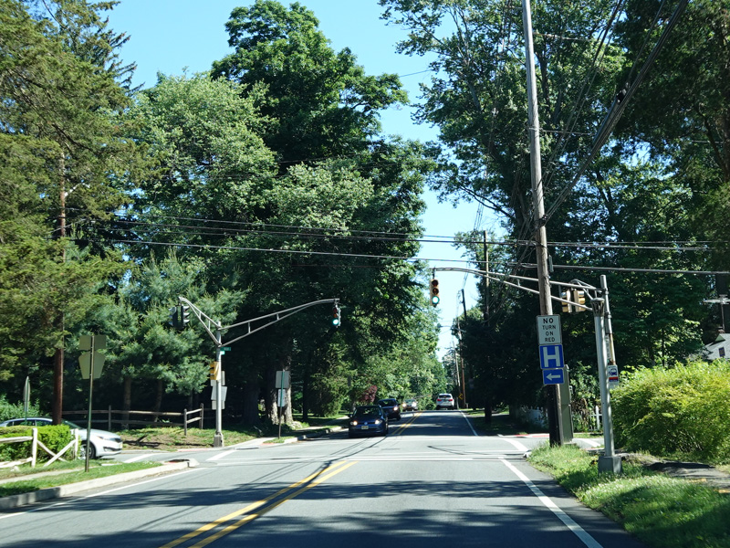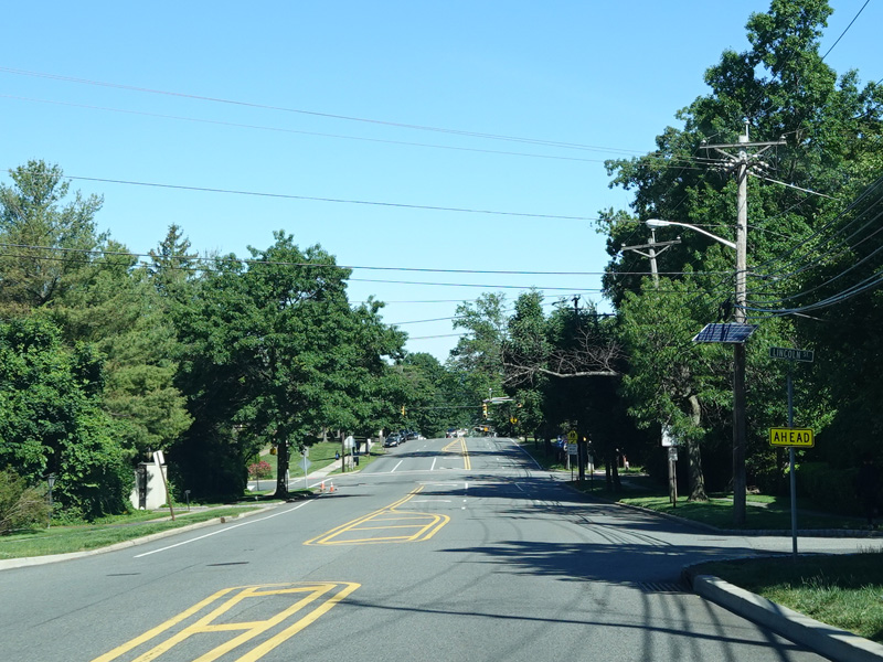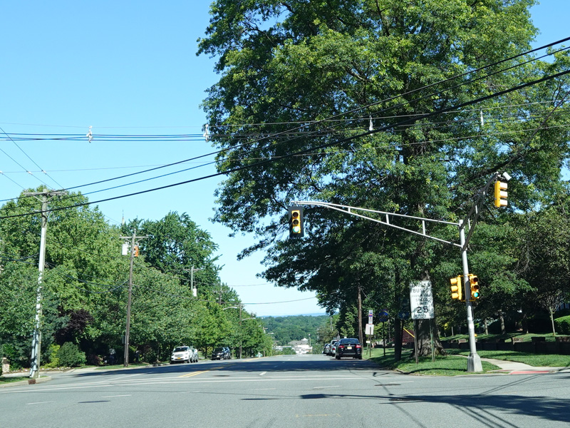 Welcome to Tenafly! There are traffic lights at West Clinton Avenue and Riveredge Road (CR 70), followed by a flasher at Hickory Avenue.