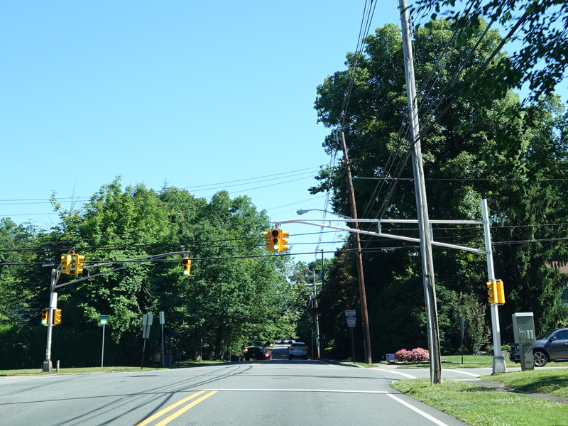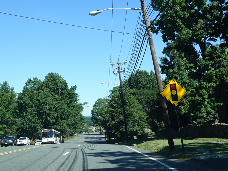 There is a traffic light at Sylvan Avenue (US 9W). Turn left to go south or turn right to go north.