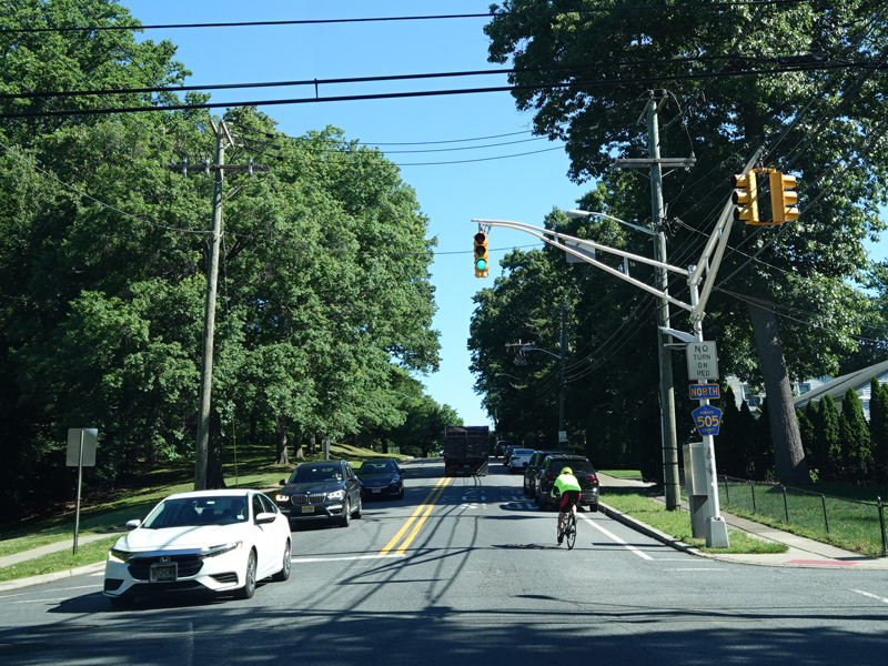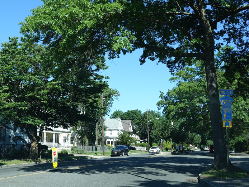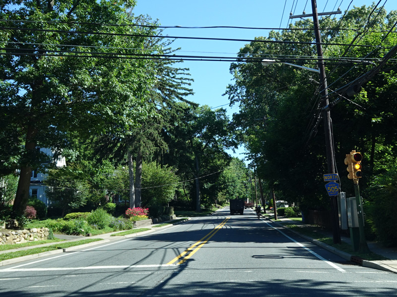 There is a traffic circle at Tenafly Road and Lafayette Avenue. Continue straight ahead on Palisade Avenue to stay on CR 505.