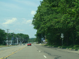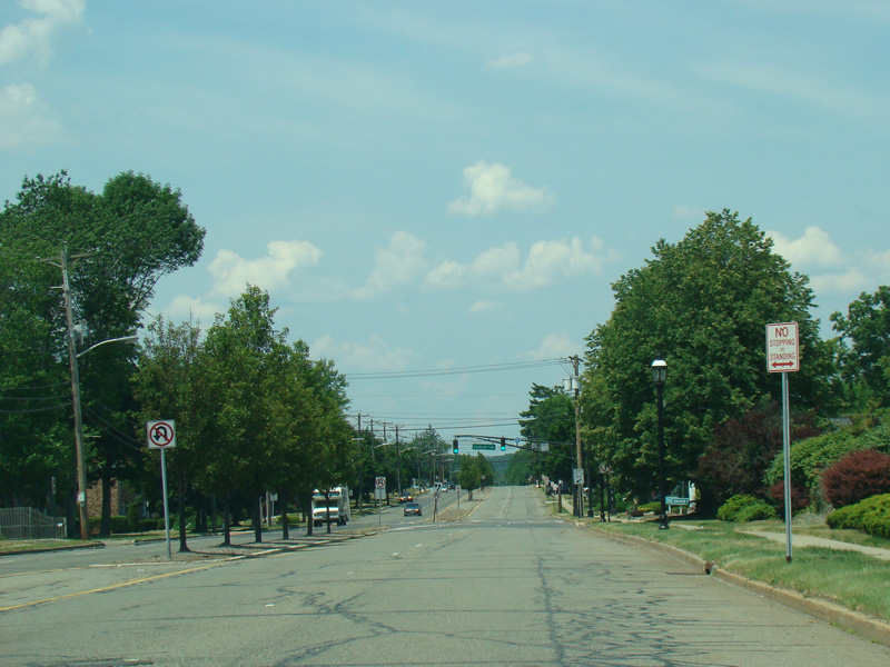 Bloomfield Avenue runs northwest to Fairfield as a four-lane road, divided in some areas and undivided in others.