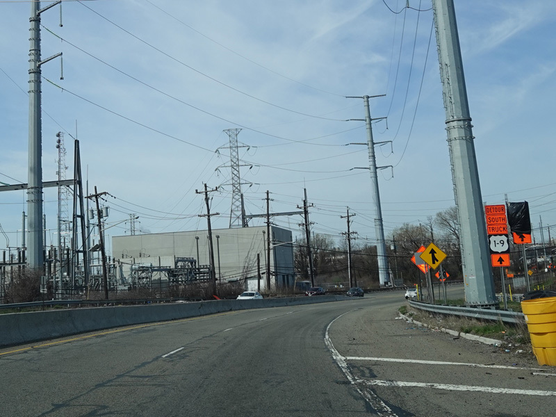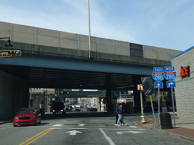 There are entrances to the New Jersey Turnpike (I-95) and I-280. Newark-Jersey City Turnpike passes under the New Jersey Turnpike (I-95) just north of the split for the eastern and western spurs and just south of exit 15W for I-280.